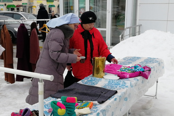 Организаторами мероприятия выступили сестры милосердия Пестречинского благочиния. За два часа они раздали всю демисезонную одежду, собранную ранее на гуманитарном складе, — куртки, пальто, комбинезоны, шапки, сапоги и др. Свыше двухсот блинов с вареньем и сгущенным молоком были розданы прохожим.
