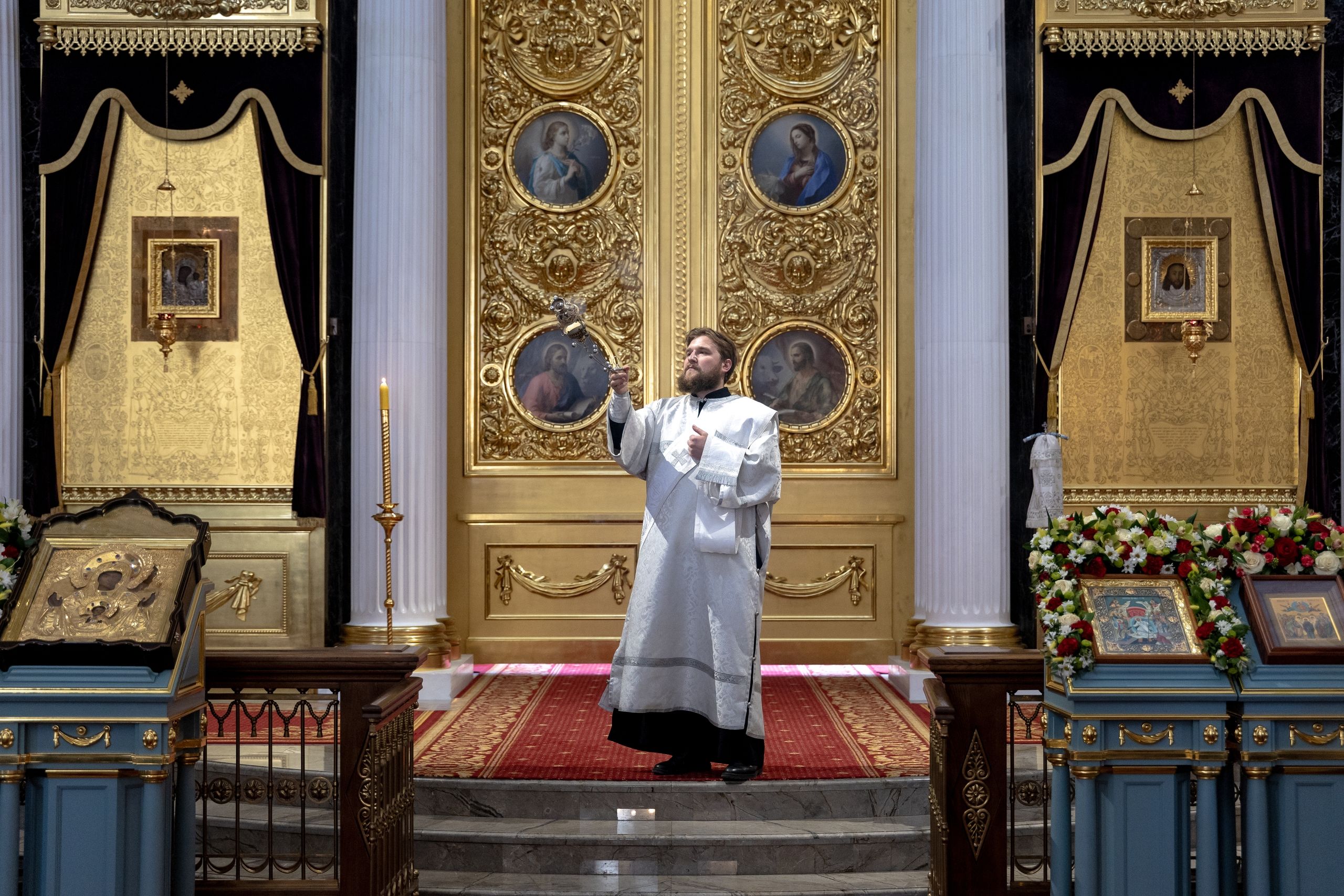 Песнопения исполнили два архиерейских хора: смешанный под управлением Марины Литвиненко и мужской под управлением Дениса Рогова.