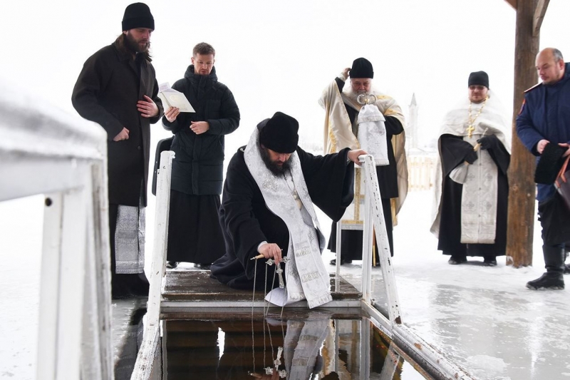 Накануне и в день Крещения Господня традиционно совершается освящение воды в храмах, источниках и купелях