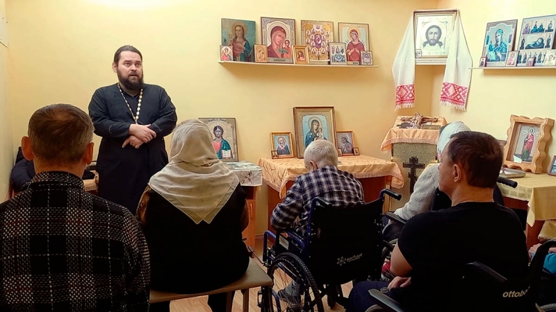 Настоятель храма свщмч. Павла Дернова города Елабуги иерей Илия Кривов по средам проводит цикл периодических занятий в православном кружке «Благословение» для постояльцев Елабужского дома-интерната для престарелых и инвалидов.