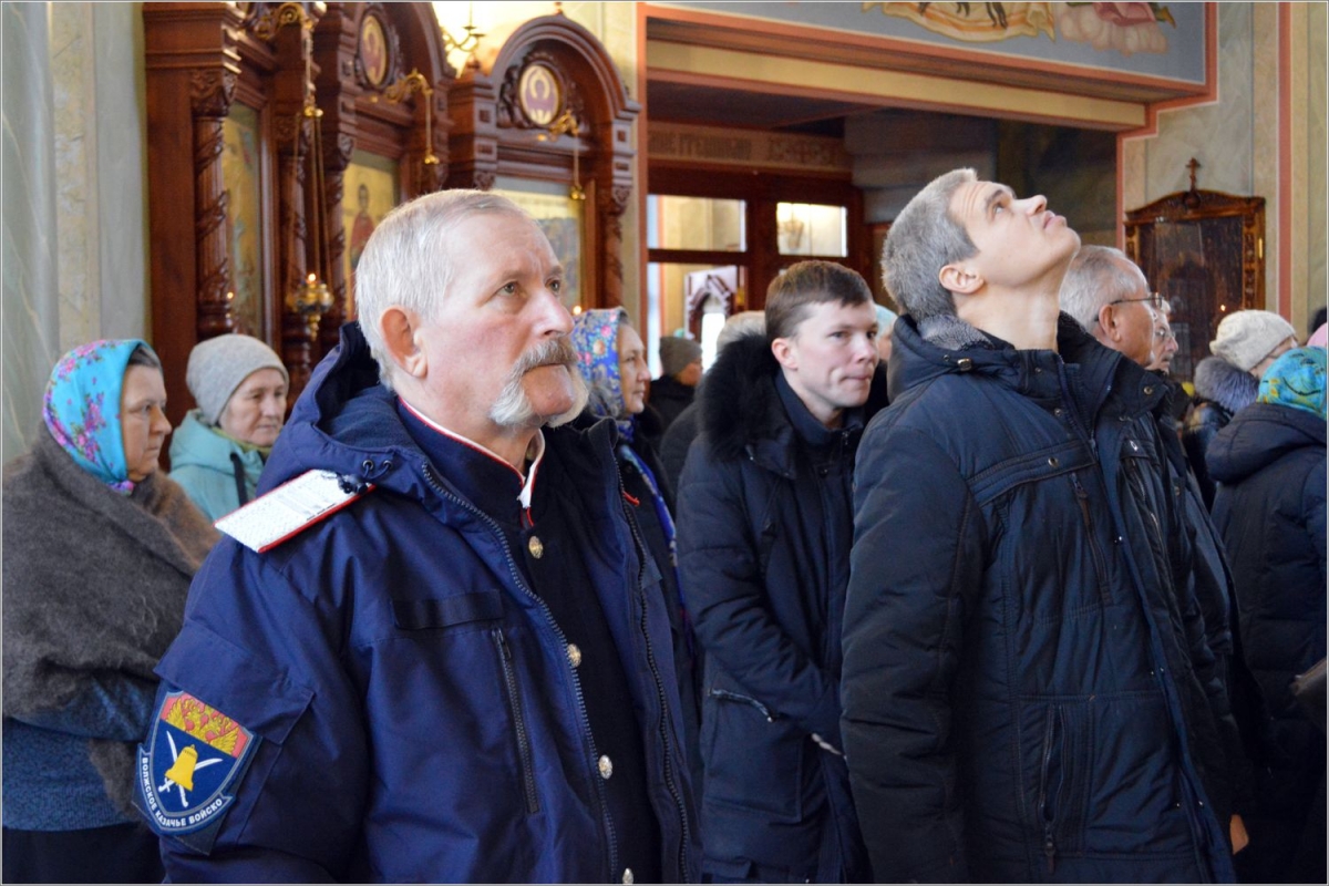 Ради совместной молитвы с архиереем на приходе Серафима Саровского собрались представители духовенства Закамского и Елабсжского благочиний вместе с благочинными протоиереем Андреем Дубровиным и протоиереем Михаилом Гречко. И, конечно же, архипастырский визит не могли пропустить и многочисленные прихожане других храмов города, которые, кроме того, пришли сюда, чтобы поздравить своих братьев и сестёр с престольным праздником и вместе помолиться к святому Саровскому чудотворцу. Богослужебные песнопения исполнил клиросный хор Свято-Вознесенского архиерейского подворья. За порядком в храме во время Божественной литургии следили казаки Боровецкого хутора.