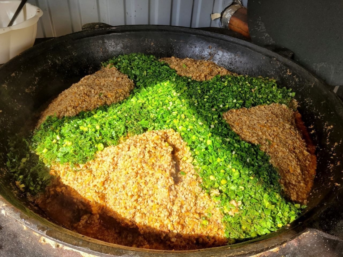 Блюдо «Ленивые голубцы» в казане заботливо было приготовлено старанием прихожан - Дмитрия Пензина и Дмитрия Куршакова и их команды.