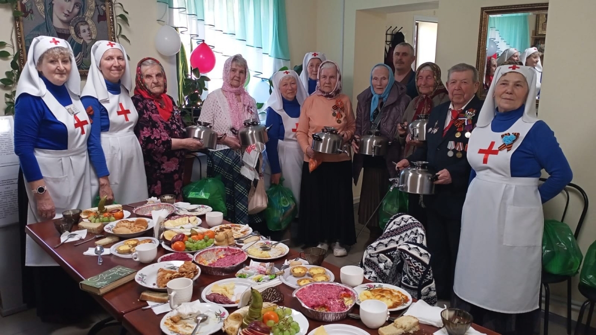 В уютной атмосфере Дома милосердия на Гассара 23, сестры и братья милосердия устроили праздничный обед с поздравлениями и песнями, где каждый из детей войны мог вспомнить о тяжелых и светлых моментах того времени. Вкусные блюда, сладости, горячий чай и искренние улыбки создали атмосферу единства и поддержки. На встрече присутствовал и настоятель Покровского собора, духовник Сестричества милосердия иерей Симеон Лепихин