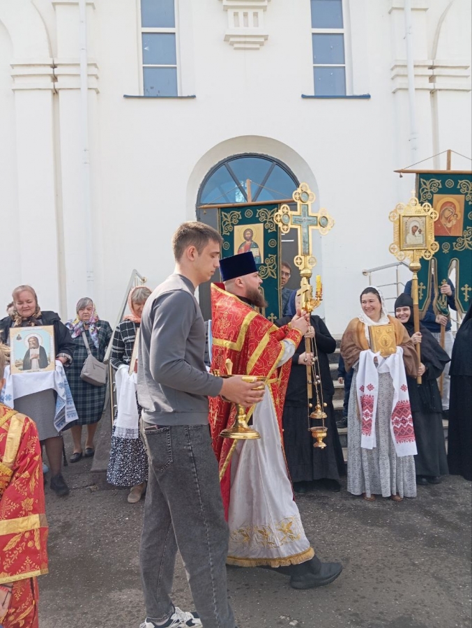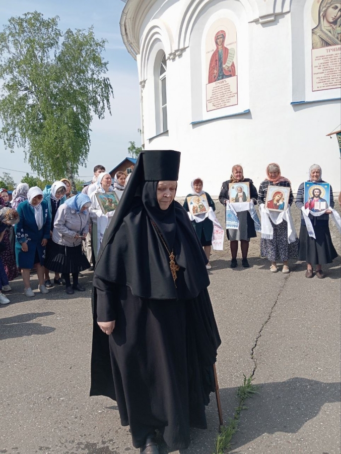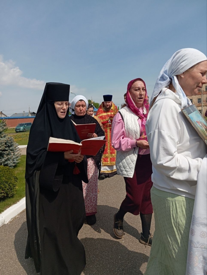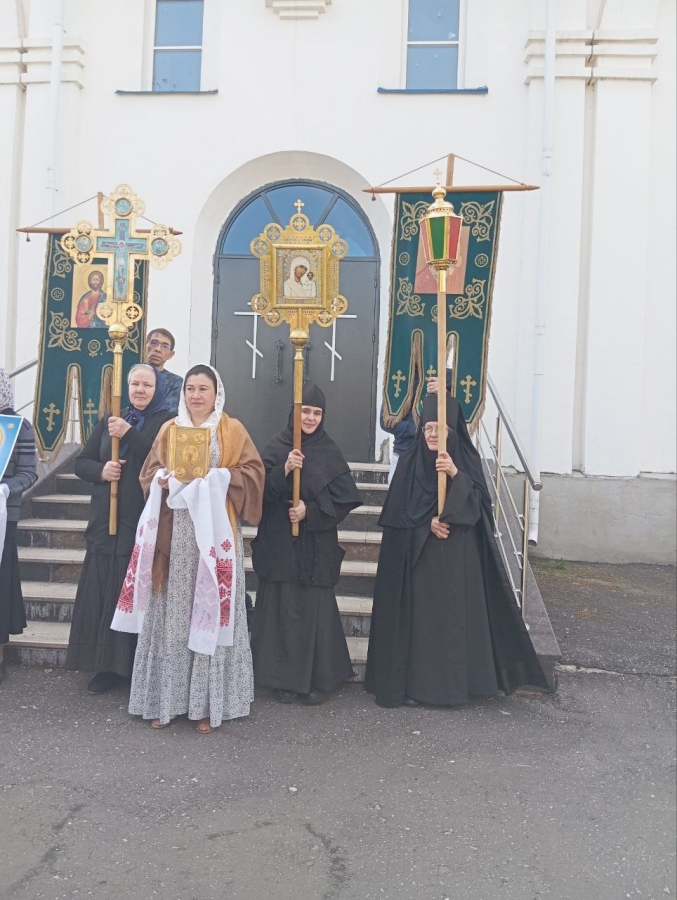 По окончании богослужения духовенство, инокини и миряне совершили крестный ход вокруг храма.