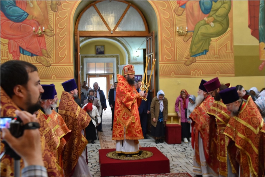 20 мая, во вторник седмицы 5-ой по Пасхе, в день воспоминания явления на небе Креста Господня в Иерусалиме, епископ Набережночелнинский и Елабужский Гавриил совершил Божественную литургию в храме Богоявления Господня города Менделеевска.