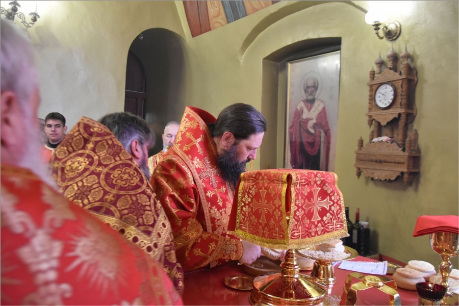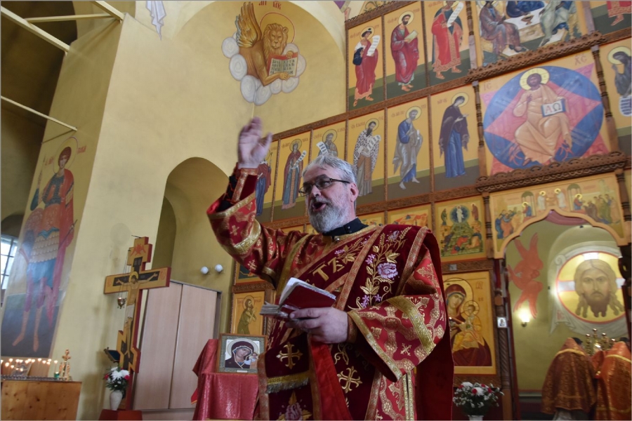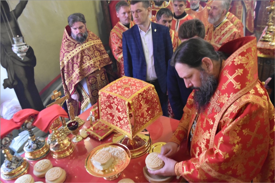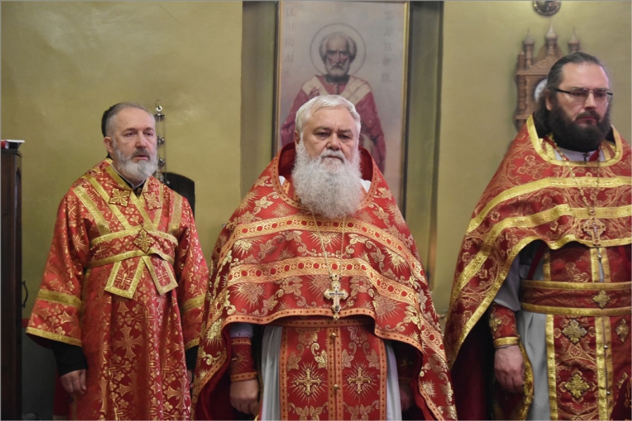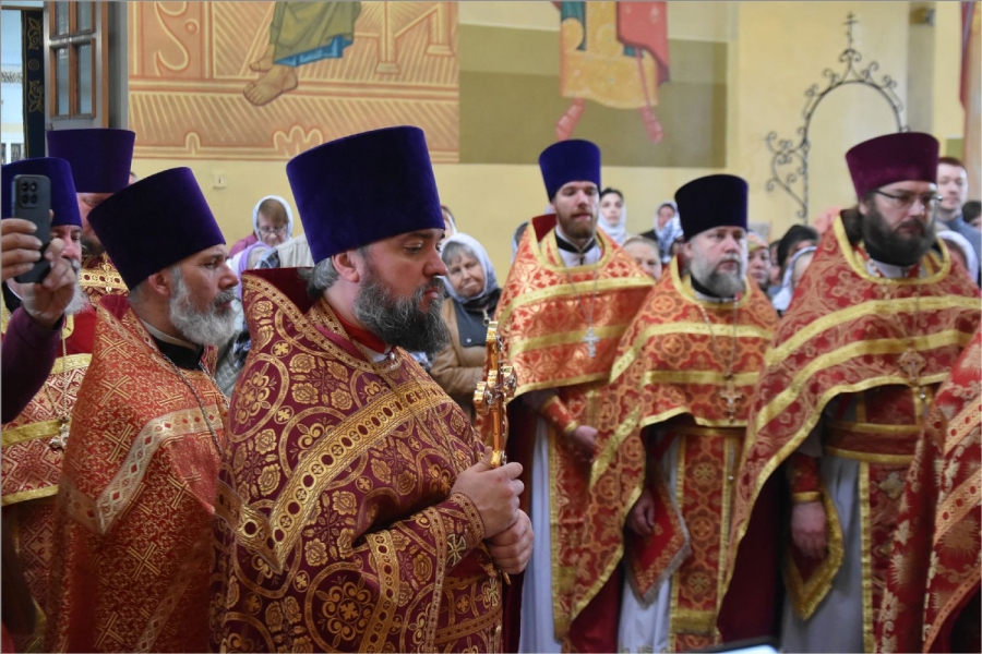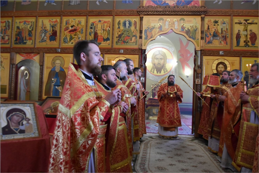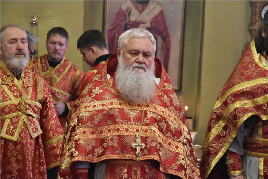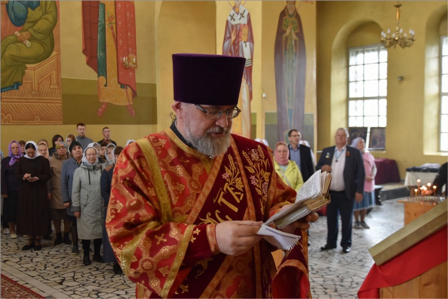 На мирной и сугубой ектениях были вознесены молитвы о Российском воинстве и о мире. По запричастном стихе проповедь произнёс протоиерей Андрей Ехлаков.