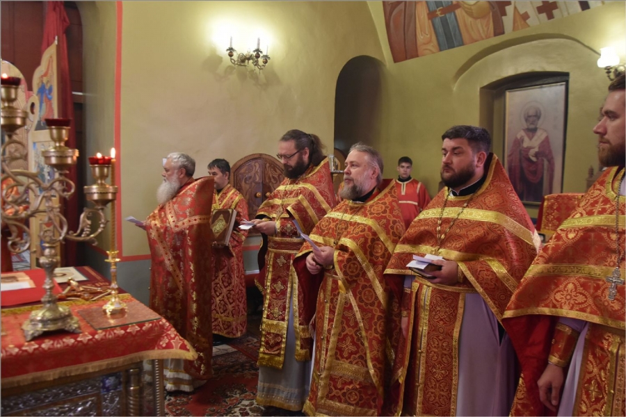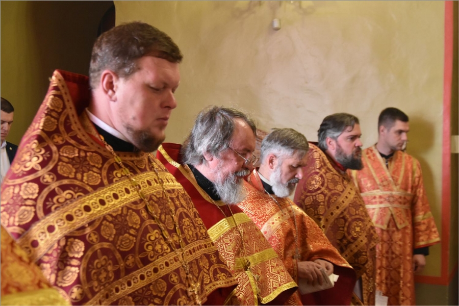 Архипастырю сослужили секретарь Набережночелнинской епархии протоиерей Андрей Лосык, благочинный Елабужского церковного округа иеромонах Кирилл (Забавнов), благочинный Закамского церковного округа протоиерей Андрей Дубровин, настоятель храма преподобного Сергия Радонежского города Агрыза протоиерей Андрей Ехлаков, настоятель храма великомученика Георгия Победоносца города Набережные Челны протоиерей Валерий Каранаев, настоятель Никольского храма города Елабуги протоиерей Владимир Силантьев, ключарь храма Казанской иконы Божией Матери города Набережные Челны иерей Дмитрий Веретнов, настоятель Богоявленской церкви города Менделеевска иерей Вячеслав Ильин, настоятель храма святителя Николая Чудотворца города Набережные Челны иерей Александр Ворошилов, настоятель Никольского собора города Мензелинска иерей Роман Храмутичев, настоятель храм Трех святителей села Ижевка Менделеевского района иерей Александр Миронов, клирик Елабужского женского монастыря иерей Даниил Кривов, клирик прихода святых бессребреников Космы и Дамиана иерей Сергий Саутин, протодиакон Дмитрий Половников.