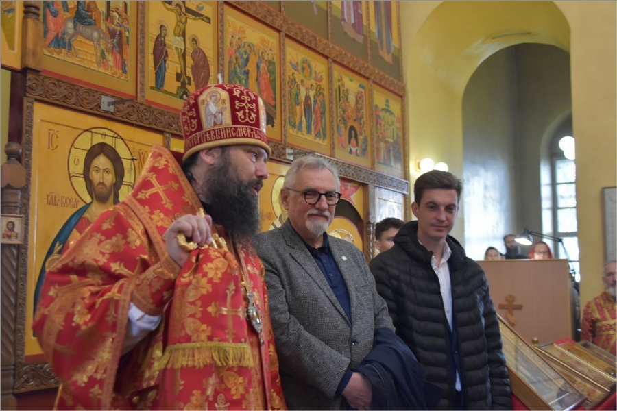 За богослужением молились участники конференции Императорского Православного Палестинского Общества: Председатель Татарстанского регионального отделения МОО «Императорское Православное Палестинское Общество» Кузьма Николаевич Морозов, Руководитель научной секции общества Сергей Юрьевич Житинёв, Управляющий делами общества Даниил Олегович Бурдыга, Заместитель председателя ТРО МОО «ИППО» Владимир Константинович Козонков.