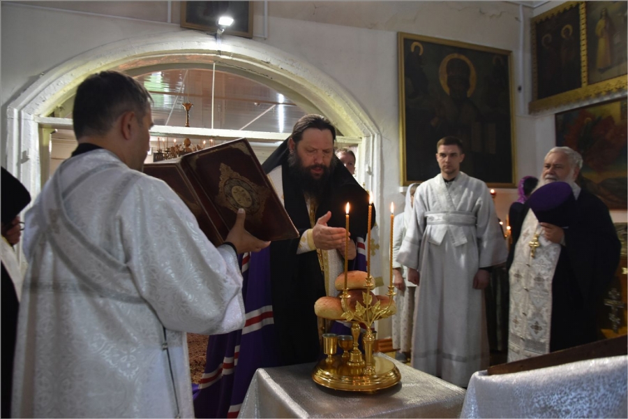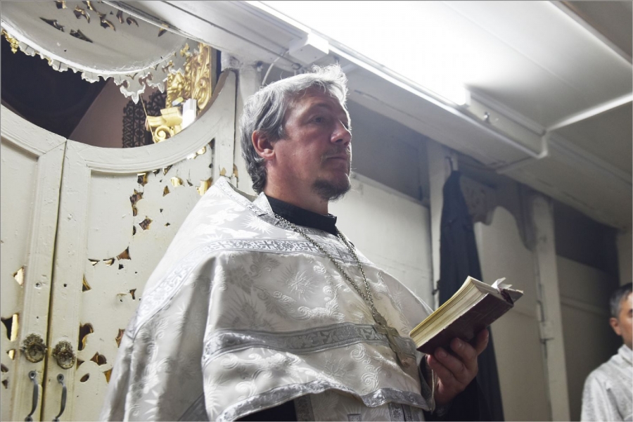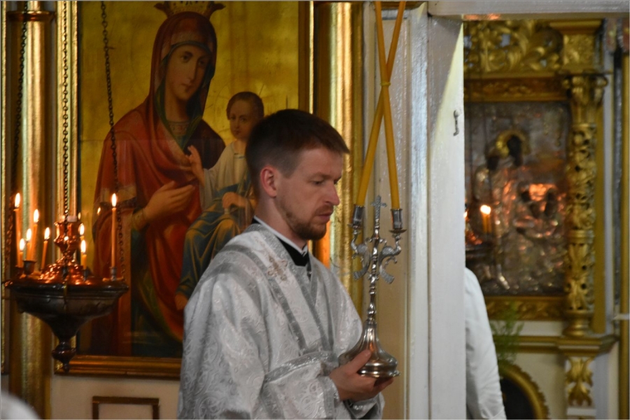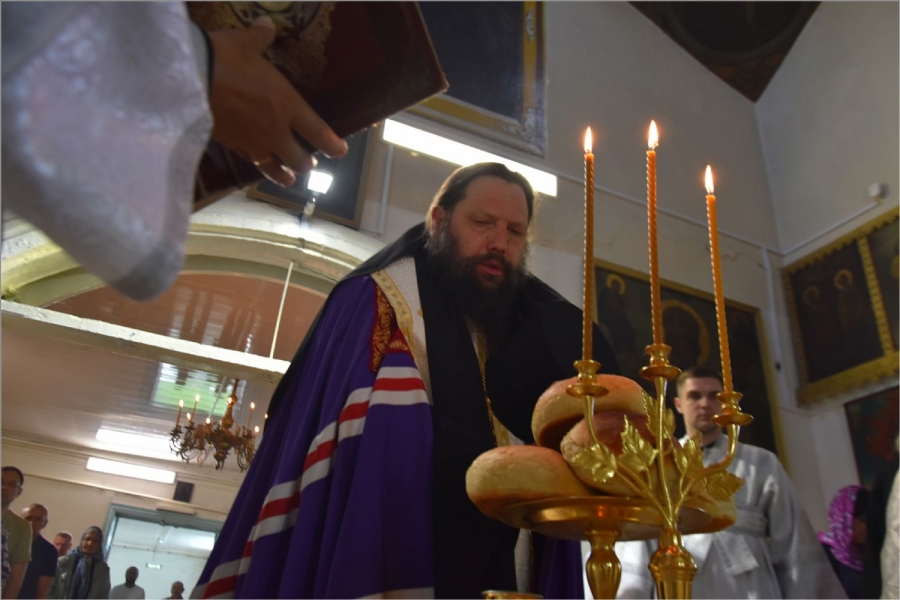 На мирной и сугубой ектениях были вознесены молитвы о Российском воинстве и о мире. Проповедь по запричастном стихе произнёс протоиерей Андрей Дубровин.