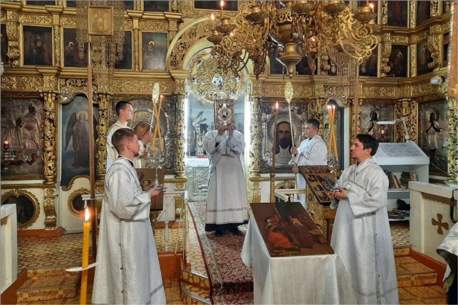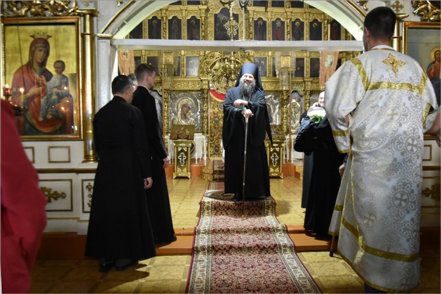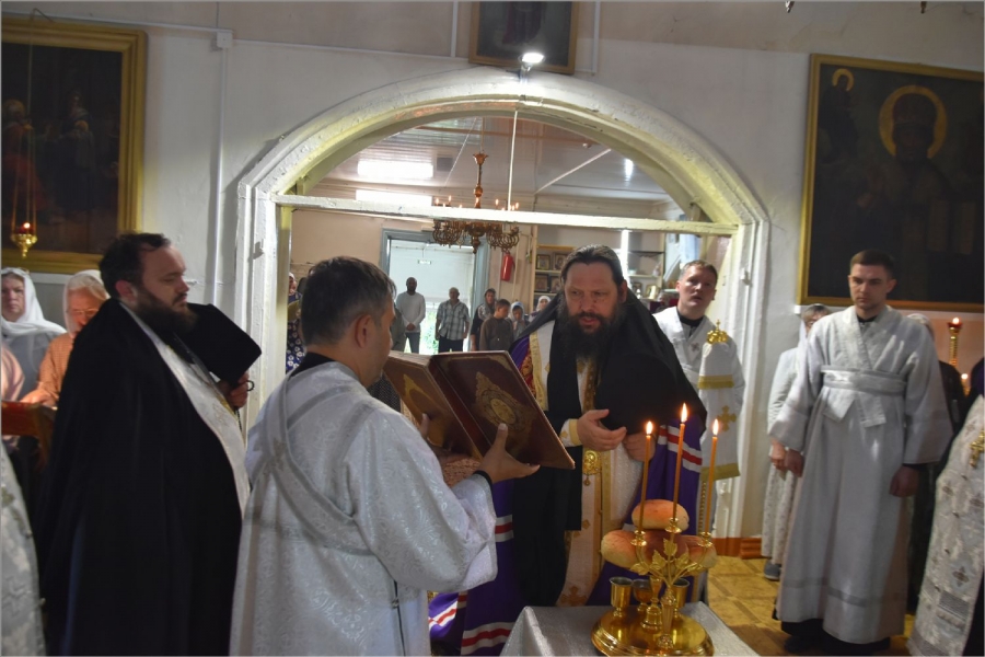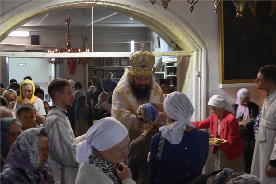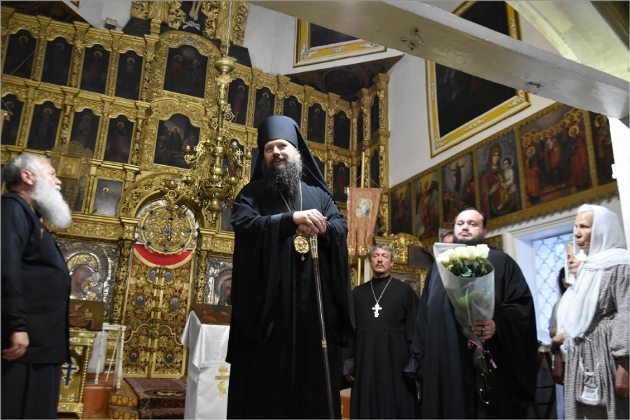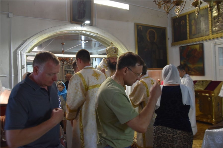 На полиелее было совершено славление святому Иоанну Предтече. После завершения службы епископ Гавриил обратился с проповедью к собравшимся в храме: