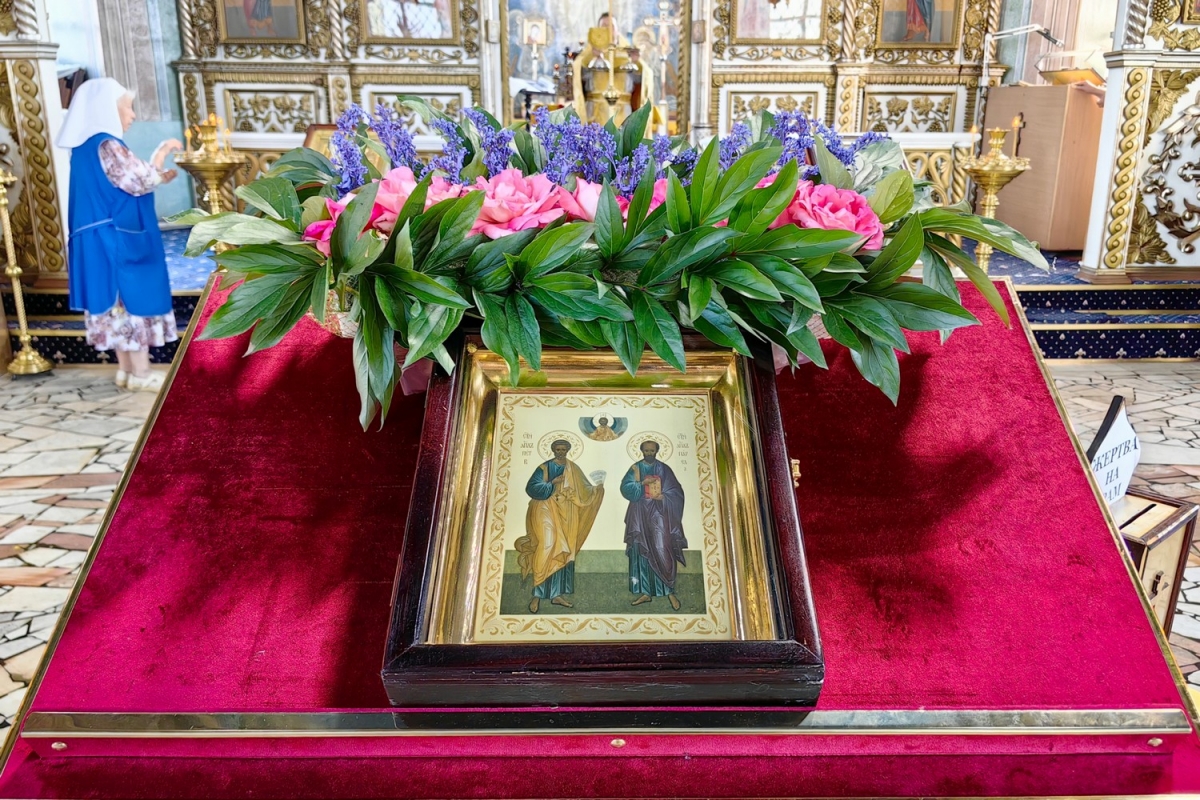 Накануне, в пятницу вечером в храме прошло Всенощное бдение с литией, посвященное апостолам Петру и Павлу.