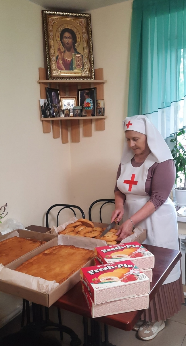 Людям, которые по состоянию здоровья не могут выйти из дома, сёстры милосердия и добровольцы общины доставили горячие обеды, продуктовые наборы и вещи первой необходимости на дом.