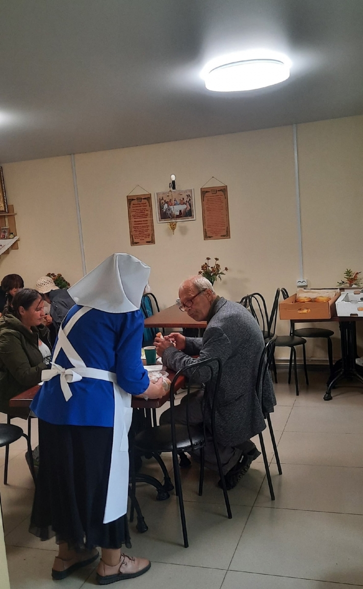 Так в воскресенье 13 июля, в праздник собора святых апостолов, сестры милосердия организовали очередной благотворительный обед для нуждающихся. Горячее питание в Доме милосердия получили 52 человека - люди, оказавшиеся в сложной жизненной ситуации, малоимущие и все те, кому в силу различных обстоятельств необходима такая помощь.