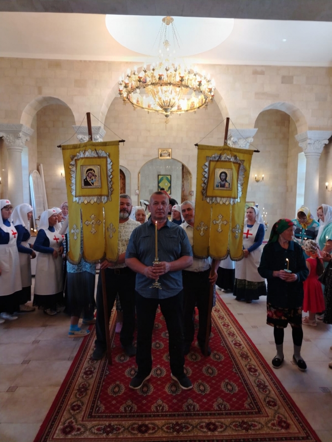 По завершении Литургии был совершен праздничный крестный ход вокруг храма.