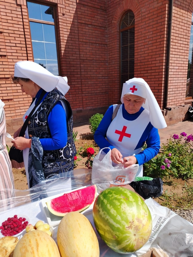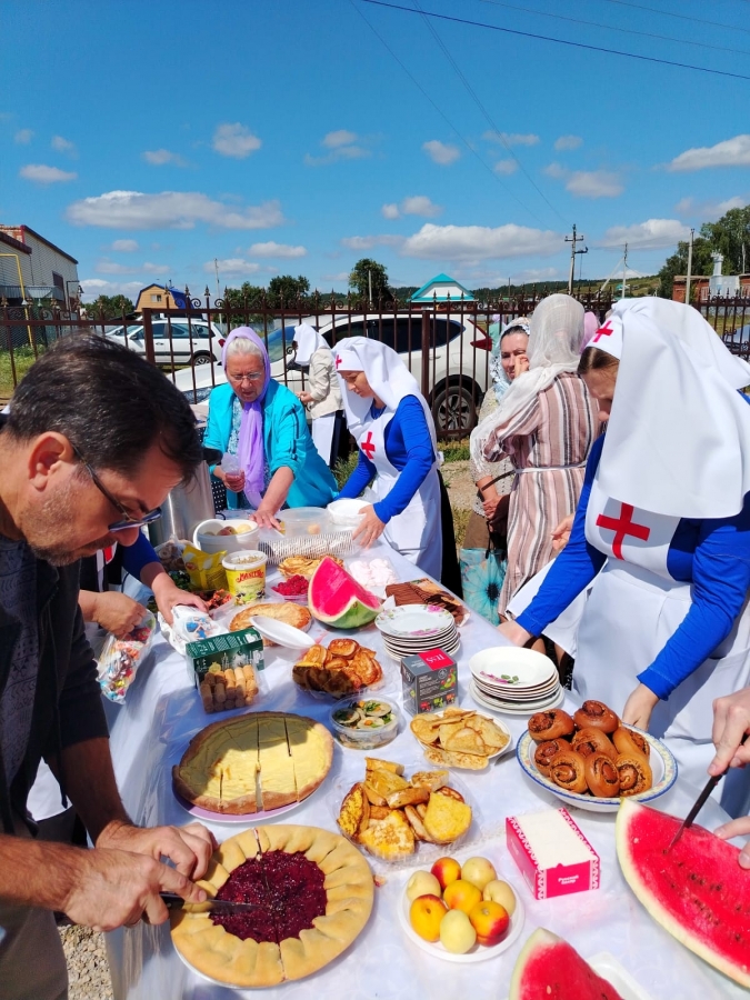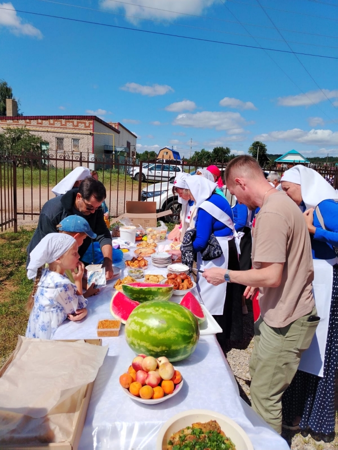 После богослужения на территории храма состоялась общая праздничная трапеза.