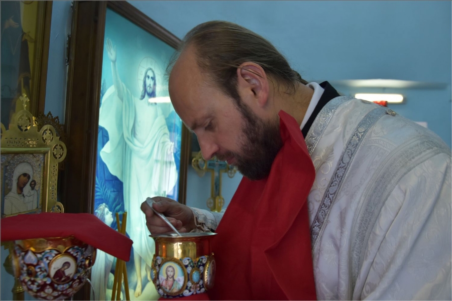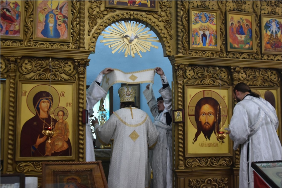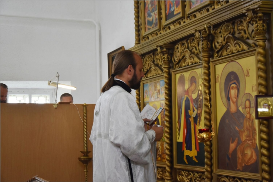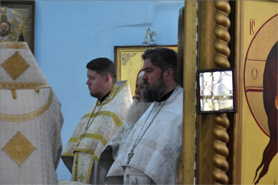 Богослужебные песнопения исполнил мужской состав архиерейского хора под управлением Евгения Моромова. Проповедь по запричастном стихе произнес иерей Илья Павлов.