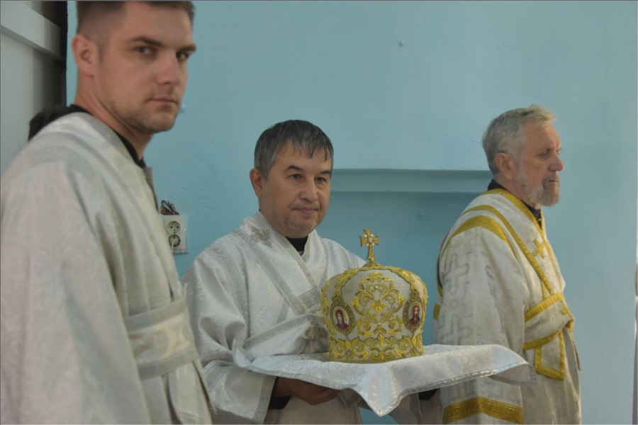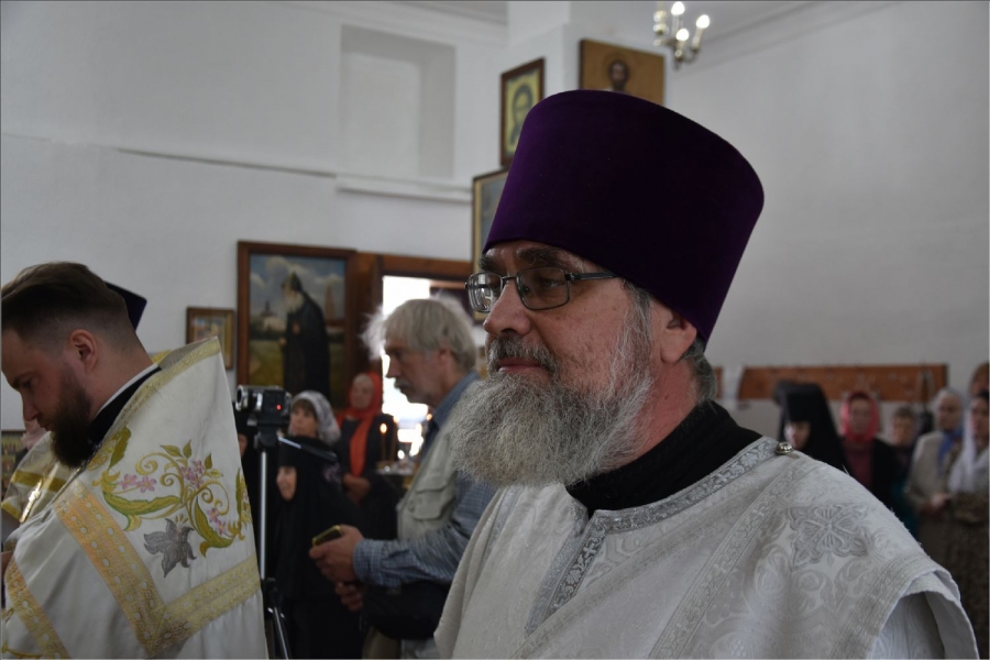 Своему архипастырю сослужили секретарь Набережночелнинской епархии протоиерей Андрей Лосык, благочинный Елабужского округа иеромонах Кирилл (Забавнов), благочинный Закамского церковного округа протоиерей Андрей Дубровин, клирики монастыря иерей Даниил Кривов, иерей Илья Павлов, иерей Филипп Удовенко. Диаконский чин возглавил протодиакон Дмитрий Половников.