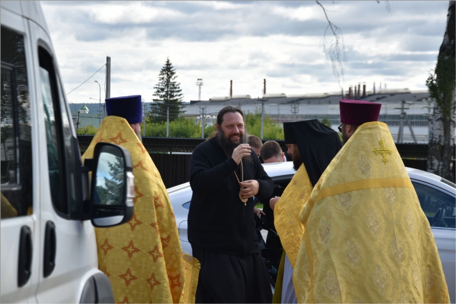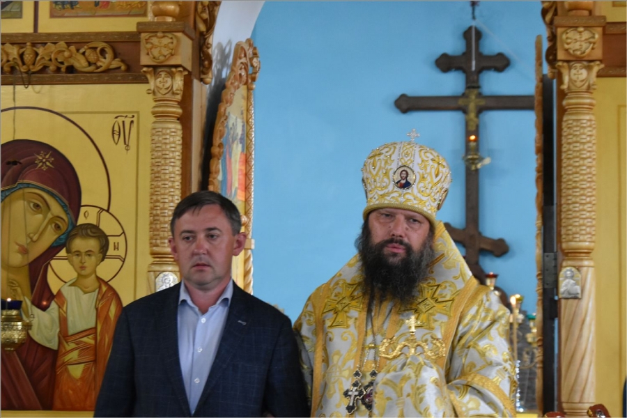 «Здравствуйте, уважаемые жители, уважаемый епископ Гавриил, уважаемые отцы. Для меня, как и для всех нас, большая честь и радость, когда вы приезжаете сюда, встретиться с вами, поздороваться, увидеться. И, конечно, для наших прихожан это огромная честь, что вы служите в этом храме.