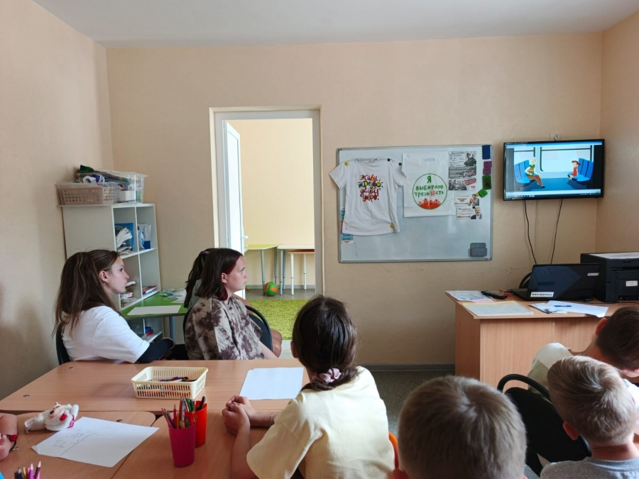 Урок провела Светлана Панкратова при поддержке Рины Митрофановой. Занятие прошло в увлекательной и доступной форме: ребятам показали познавательный мультфильм «Кто крадёт трезвость», рассказали о ценности здоровья, свободе от вредных привычек и важности осознанного выбора в пользу трезвого образа жизни.