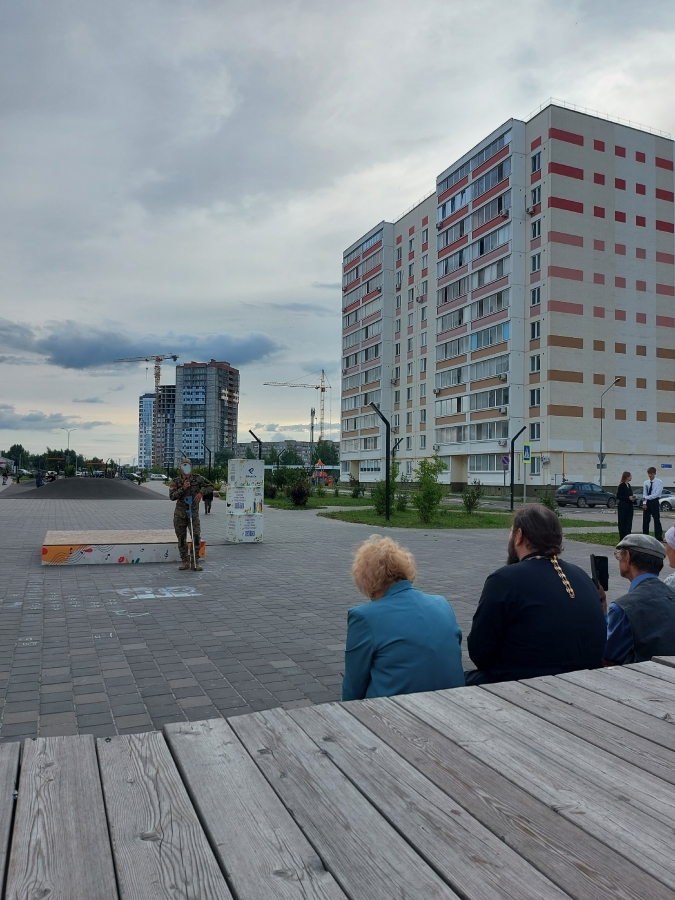Почетным гостем мероприятия стал настоятель елабужского прихода Святой Троицы иерей Илия Кривов. Отец Илия поблагодарил организаторов акции за выбор места ее проведения под открытым небом, чтобы жители города не отгораживались от войны, помнили, что беда рядом, оказывали помощь волонтерам, помогали нашим воинам и мирным жителям, оказавшимся в зоне боевых действий добрыми делами и молитвами.