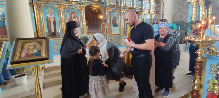 17 августа 2025 года, в Неделю 10-ю по Пятидесятнице, день памяти семи отроков, иже во Ефесе, в храме Казанской иконы Божией Матери Елабужского женского монастыря совершена Божественная литургия святителя Иоанна Златоуста.