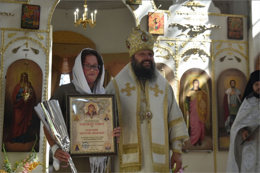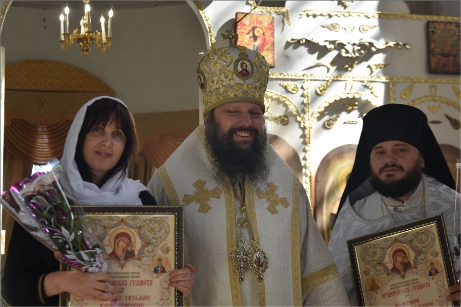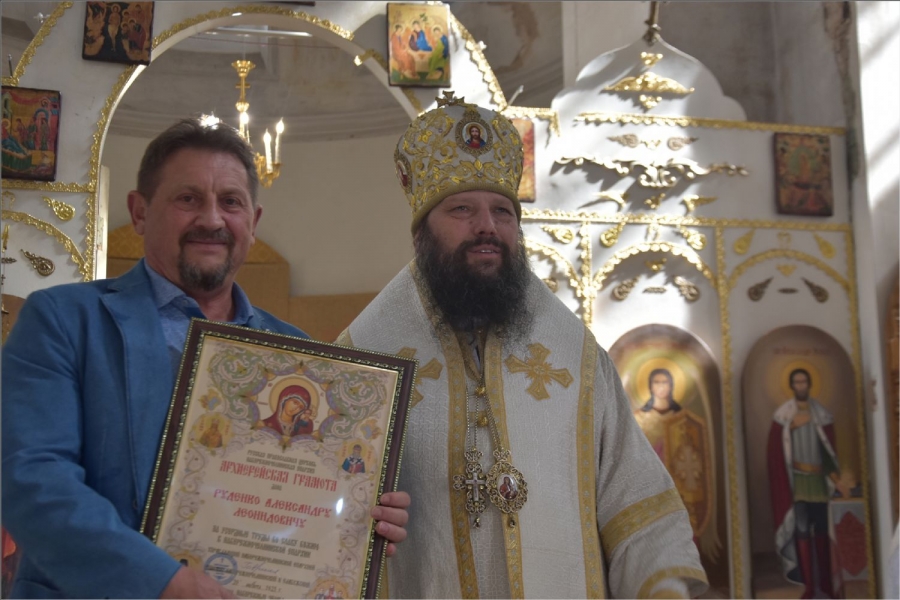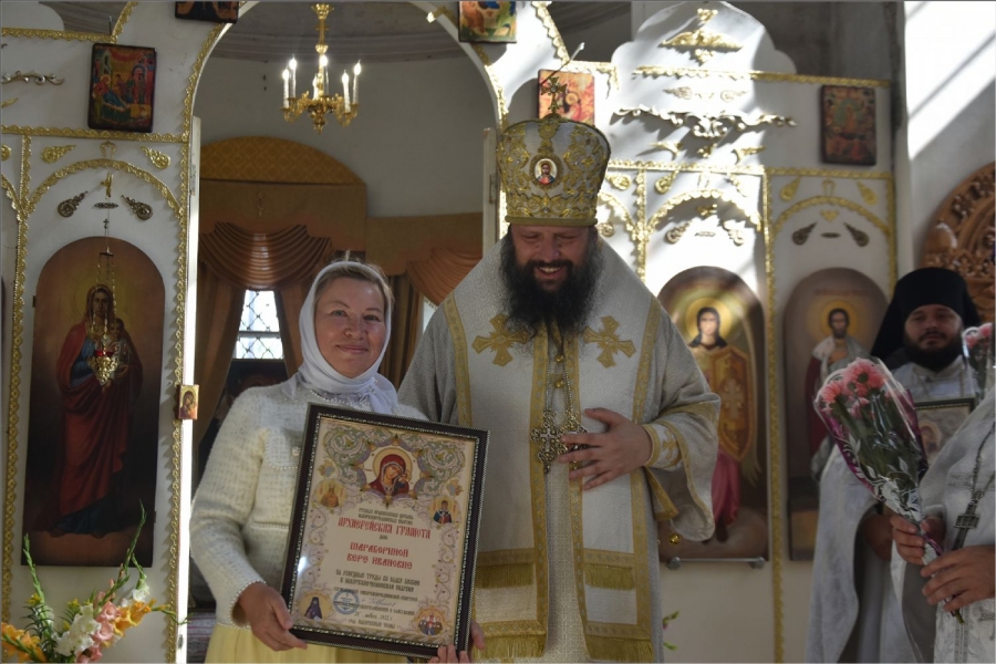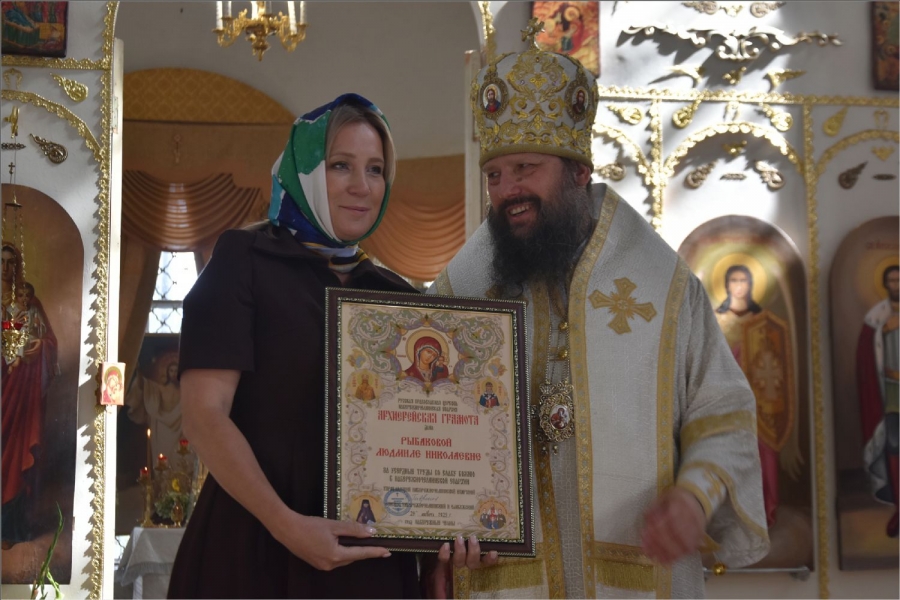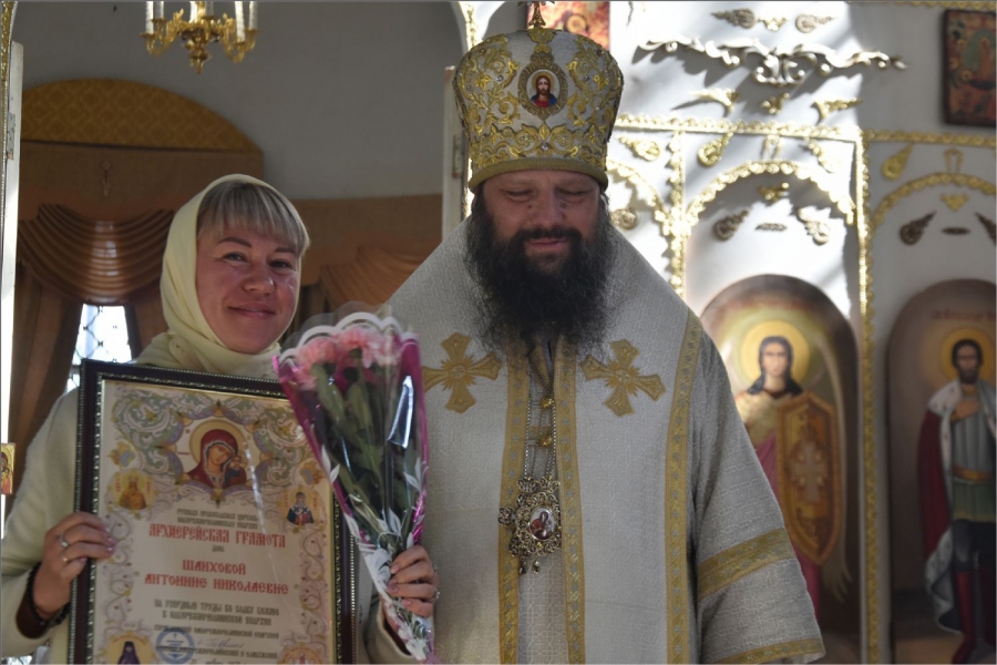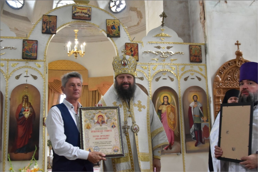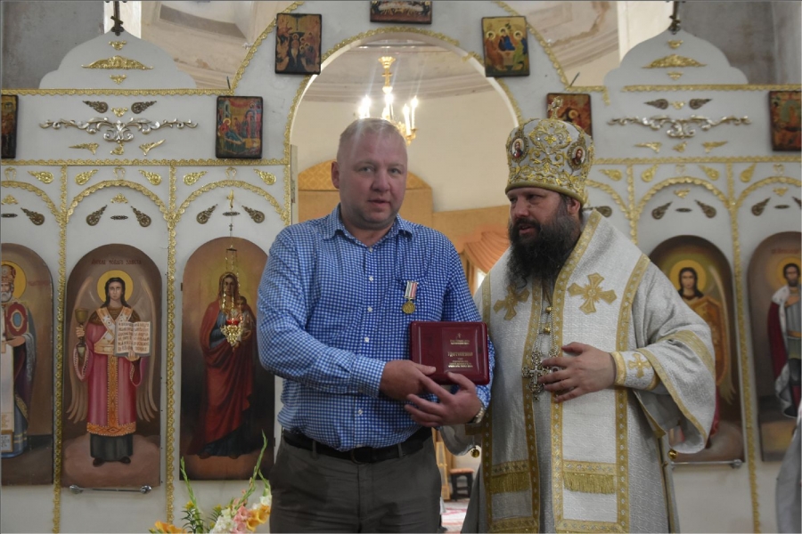 Епископ вручил Рустему Нуриеву апархиальную награду — медаль священномученика Павла Елабужского и детей его, мучеников Бориса, Григория и Симеона. Медалью пресвитера Елабужского и чад его третьей степени были награждены также Гусев Денис Александрович и уставщик Спасского собора Волкова Валентина Александровна. Архиерейских грамот во внимание к трудам по реставрации Спасского собора были удостоены Пурий Ярослав Михайлович, Руденко Александр Леонидович, директор ГАПОУ «Елабужский колледж культуры и искусств» Рыбакова Валентина Николаевна. Во внимание к усердным трудам в Спасском соборе архиерейские грамоты получили бухгалтер собора Бабушкина Светлана Владимировна, певчие хора Спасского собора Пензина Татьяна Александровна и Федотова Виктория Анфасовна. Во внимание к трудам на благо Спасского собора были награждены архиерейскими грамотами педагоги воскресной школы Спасского собора Шараборина Вера Ивановна и Шаихова Антонина Николаевна.