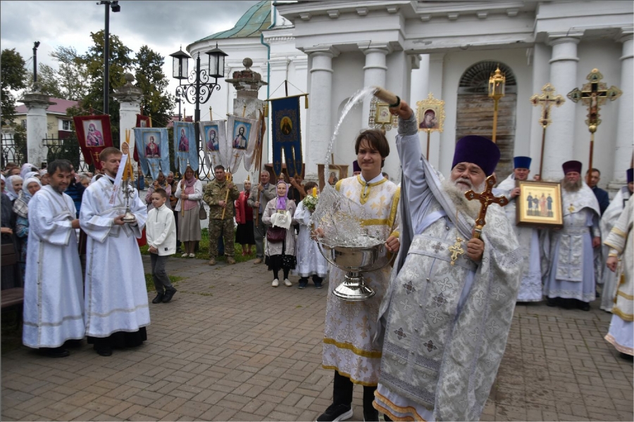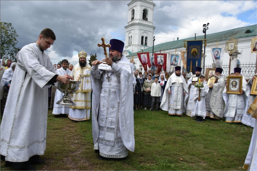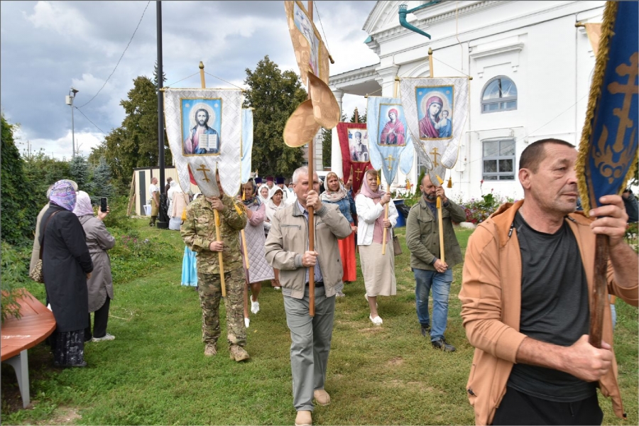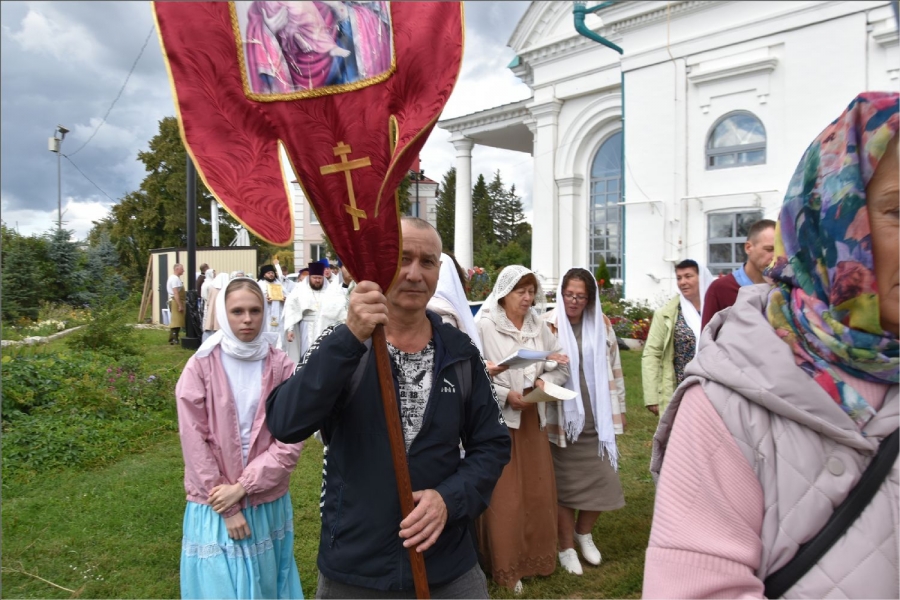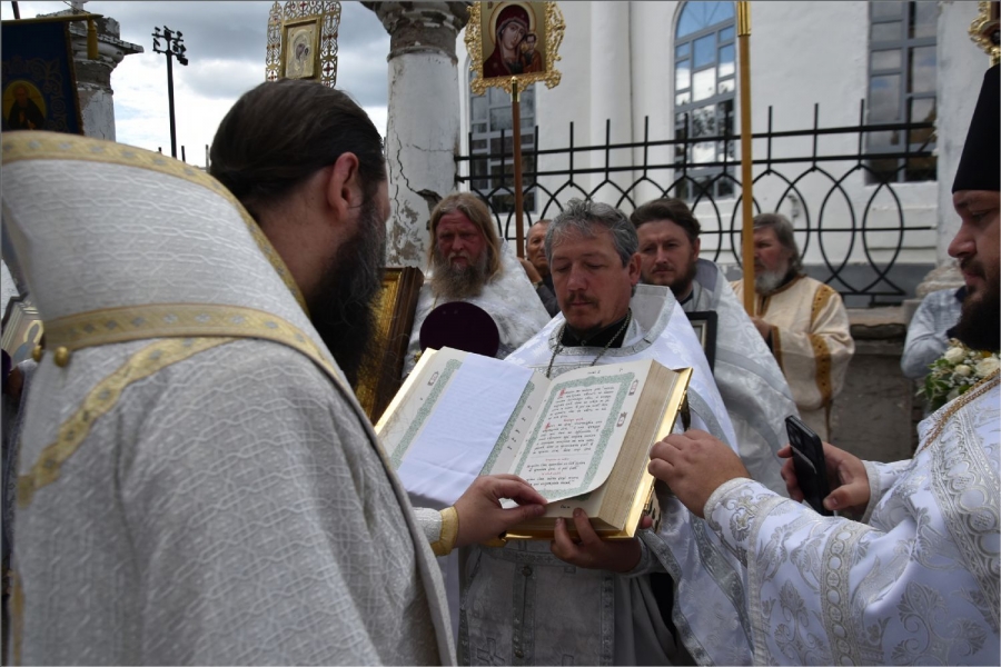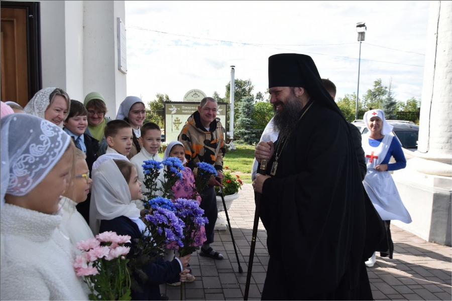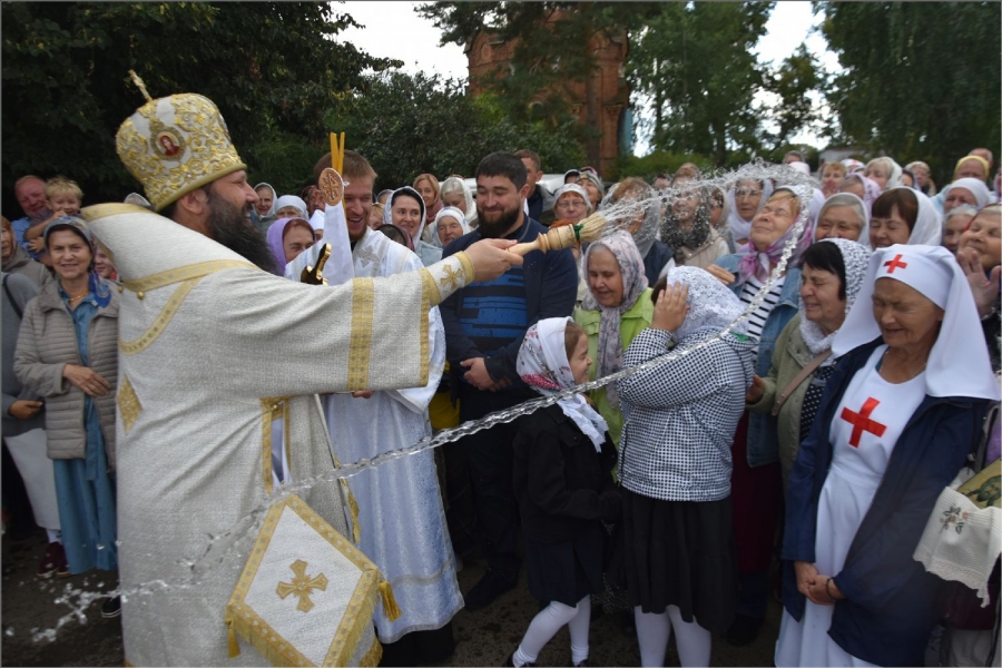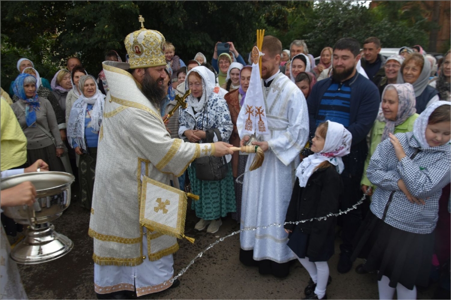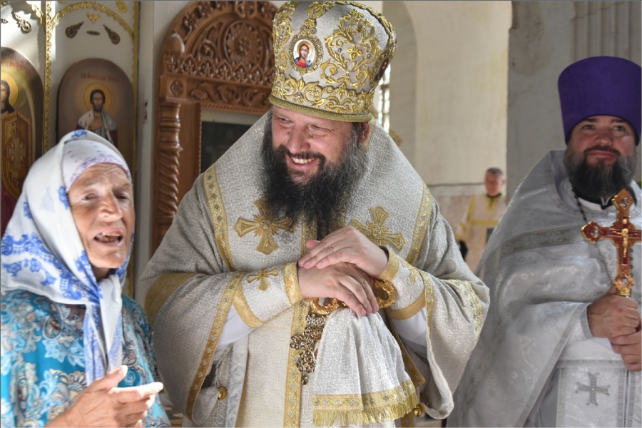 В завершение богослужения вокруг храма был совершён крестный ход. Затем архипастырь обратился со словом к верующим: