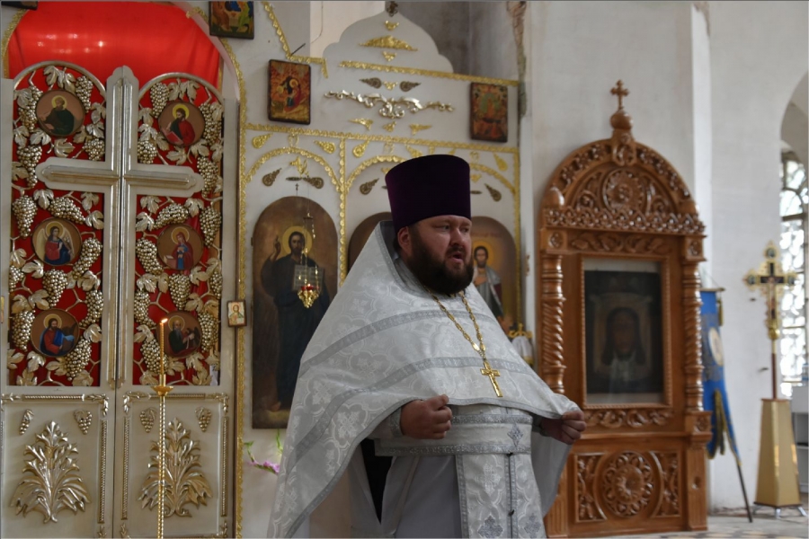 По запричастном стихе проповедь произнёс иерей Михаил Климов. Батюшка рассказал об истории происхождения Нерукотворного Образа Спасителя.