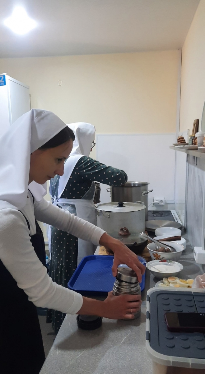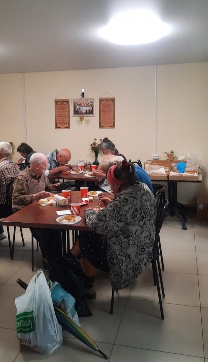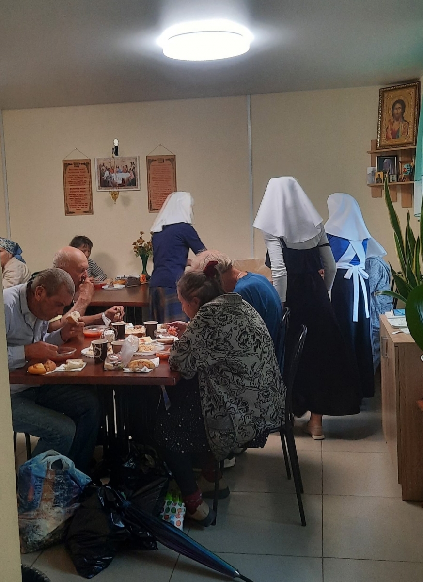 Так, и в воскресенье 31 августа в «Доме милосердия» состоялся благотворительный обед для лиц, нуждающихся в социальной поддержке. Всегда стараясь сделать меню полноценным и вкусным, благодетели сестричества приготовили для пятидесяти человек мясной борщ и макароны с тефтелями. К чаю были поданы сладости, шаньги и пироги, принесенные прихожанами на помин души сродников.