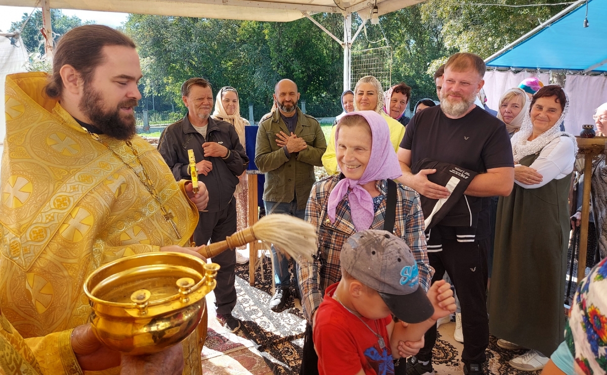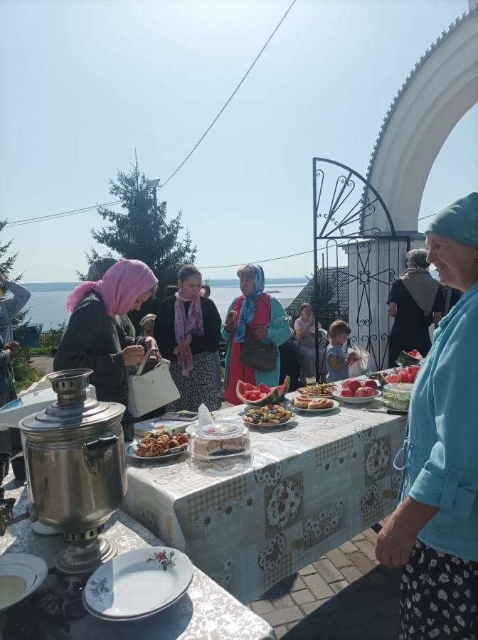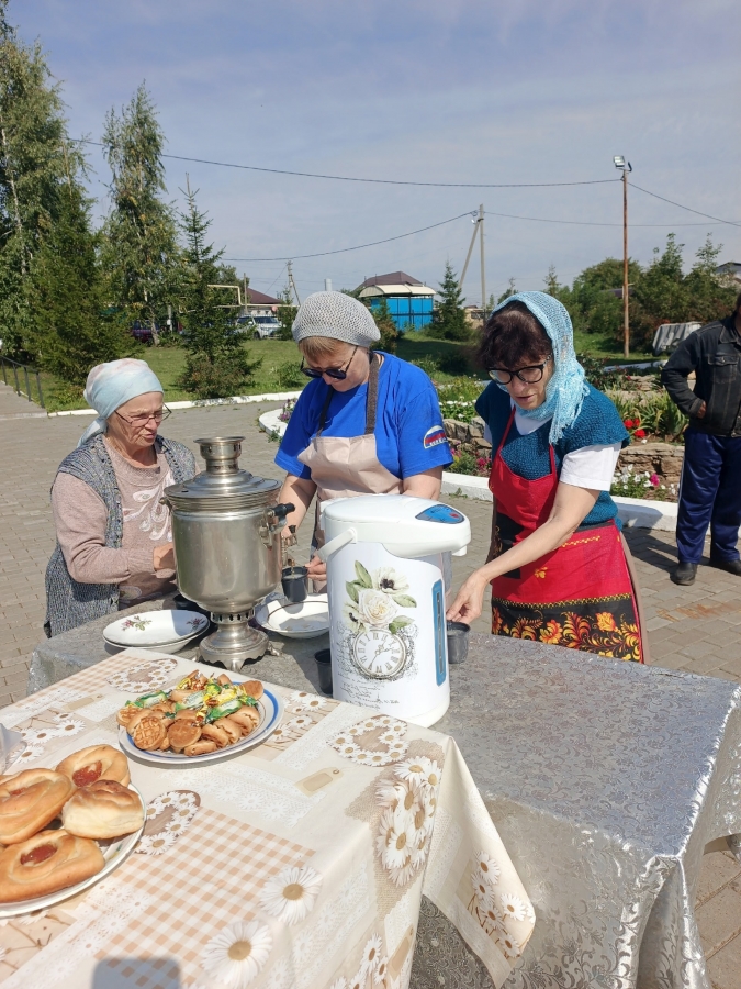 После Литургии и молебна во дворе храма состоялось общее чаепитие.