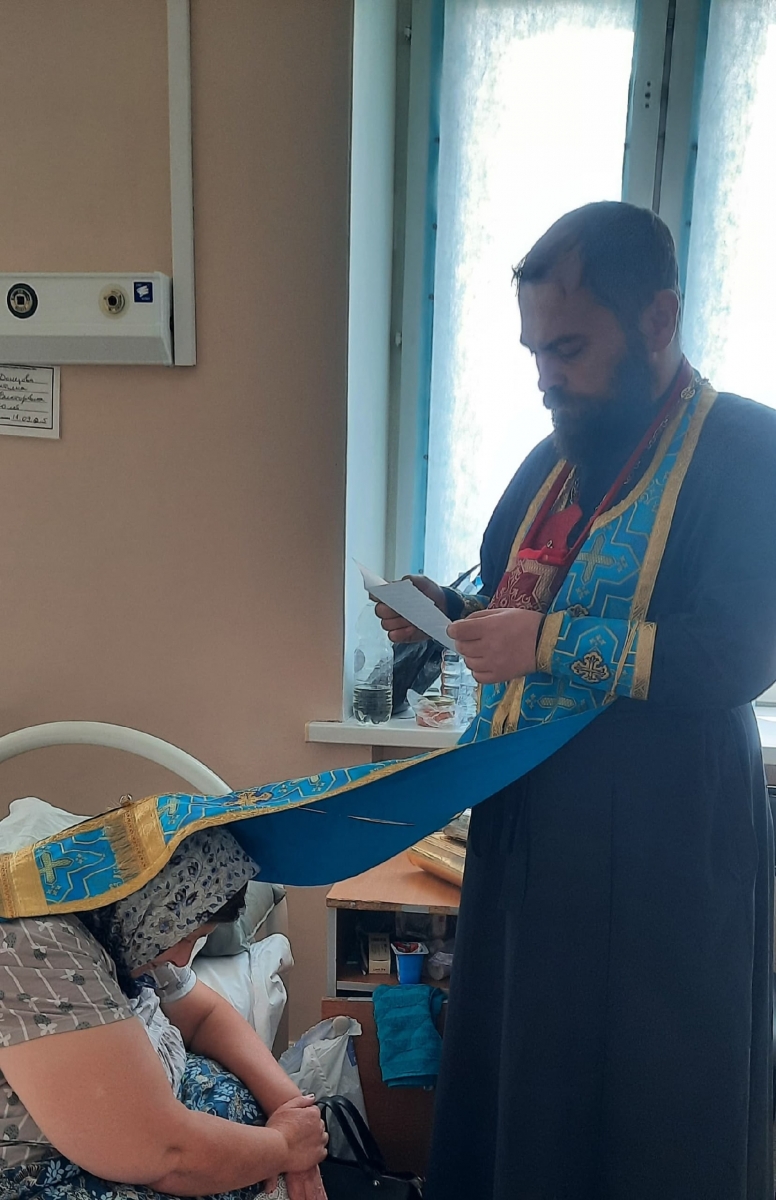 28 августа хирургическом отделении отец Даниил исповедовал и причастились Святых Христовых Таин болящую Татиану. В подготовке к участию в церковных Таинствах помогала сестра милосердия Лариса.
