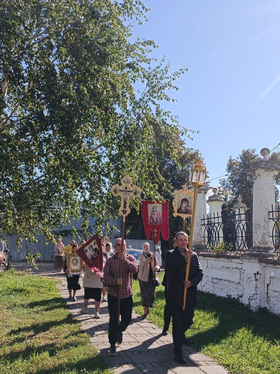 После отпуста литургии участники богослужения прошли Крестным ходом до часовни имени Святого благоверного князя Александра Невского, расположенной на территории Спасского собора.