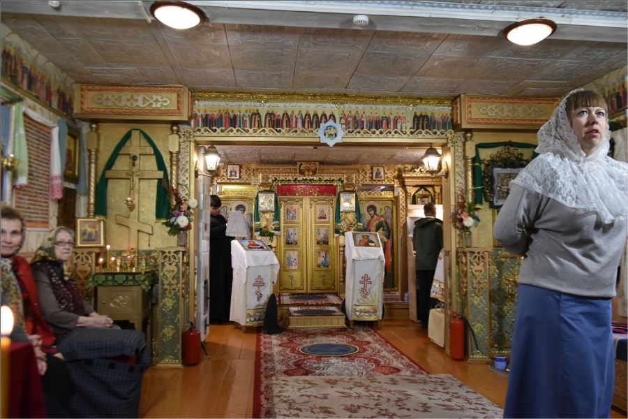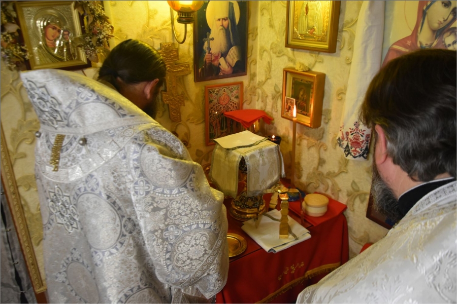 На мирной и сугубой ектениях были вознесены молитвы о Российском воинстве и о мире. Проповедь по запричастном стихе произнес протоиерей Андрей Дубровин.