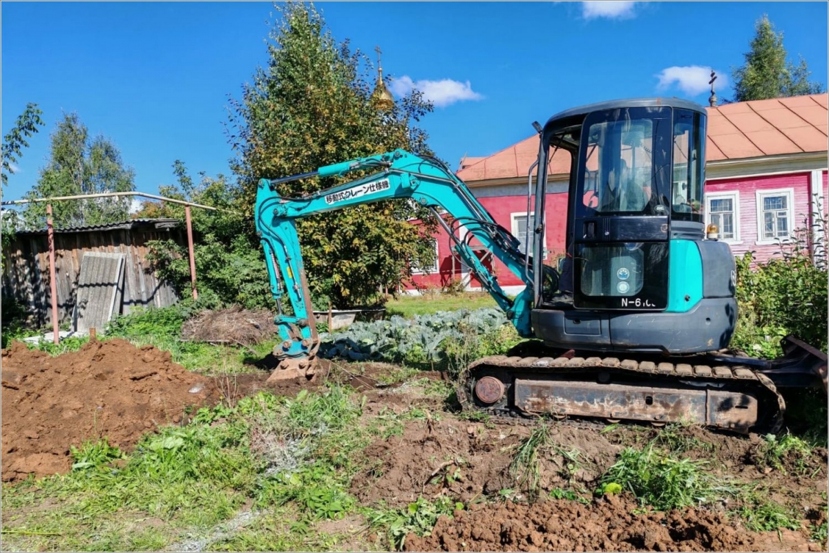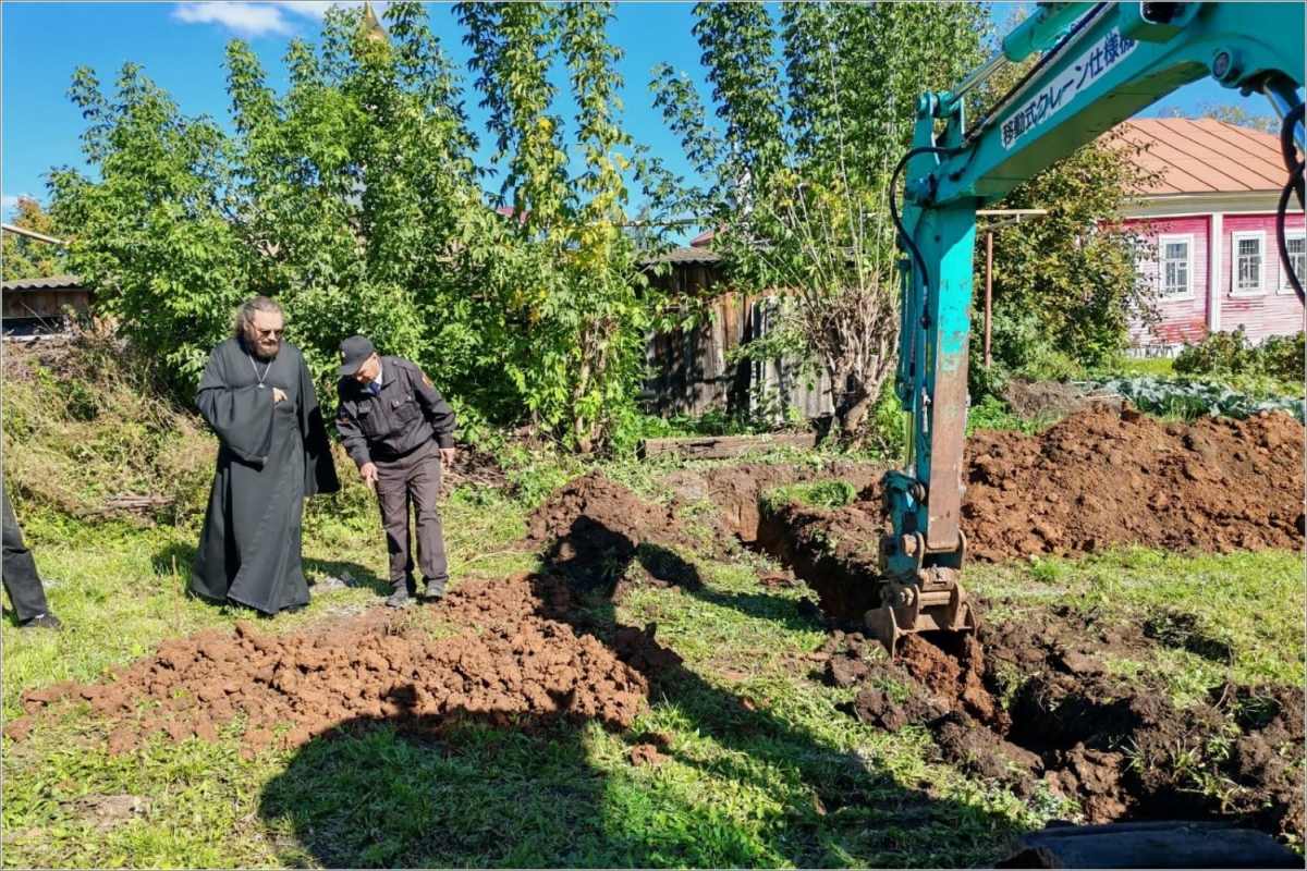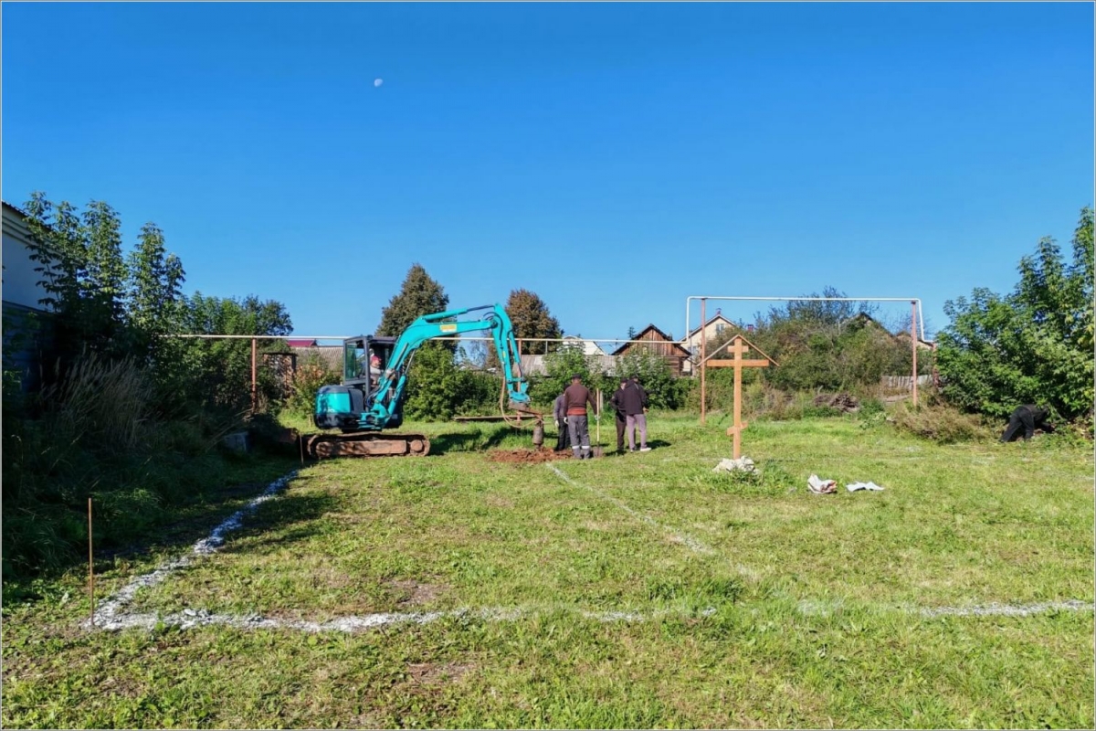 Строители из ООО «Строй-Гигант» вместе с тружениками храма разметили территорию, а также выкопали траншеи по периметру будущего фундамента.
