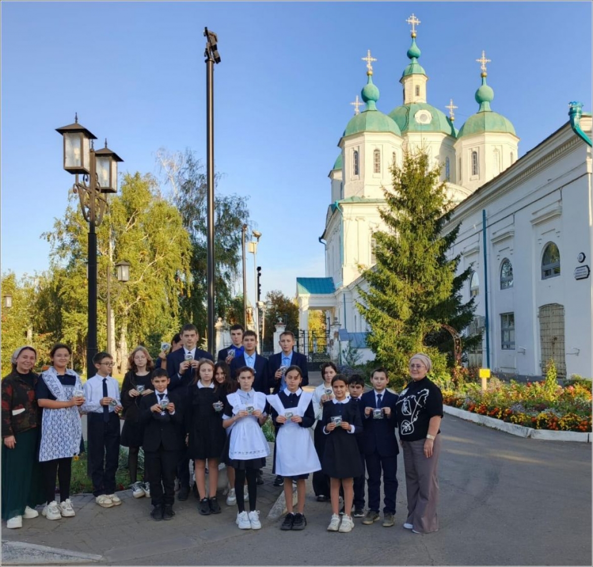 Детям были вручены подарки — пряники с изображением Спасского собора. Педагогам подарили духовную литературу.