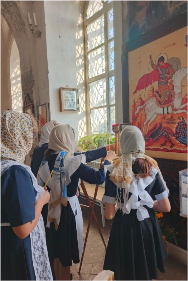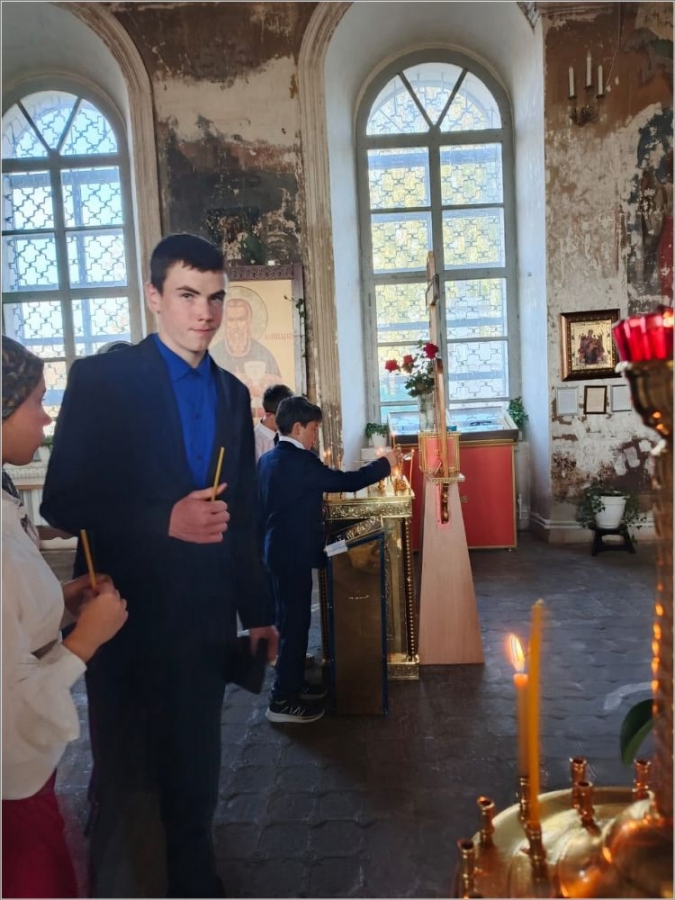 Для гостей была организована экскурсия по Спасскому собору. Они смогли поставить свечи о здравии и упокоении родных и близких, подать записки. Дети воинов, находящихся сейчас на СВО, молились у иконы святого великомученика Георгия Победоносца.