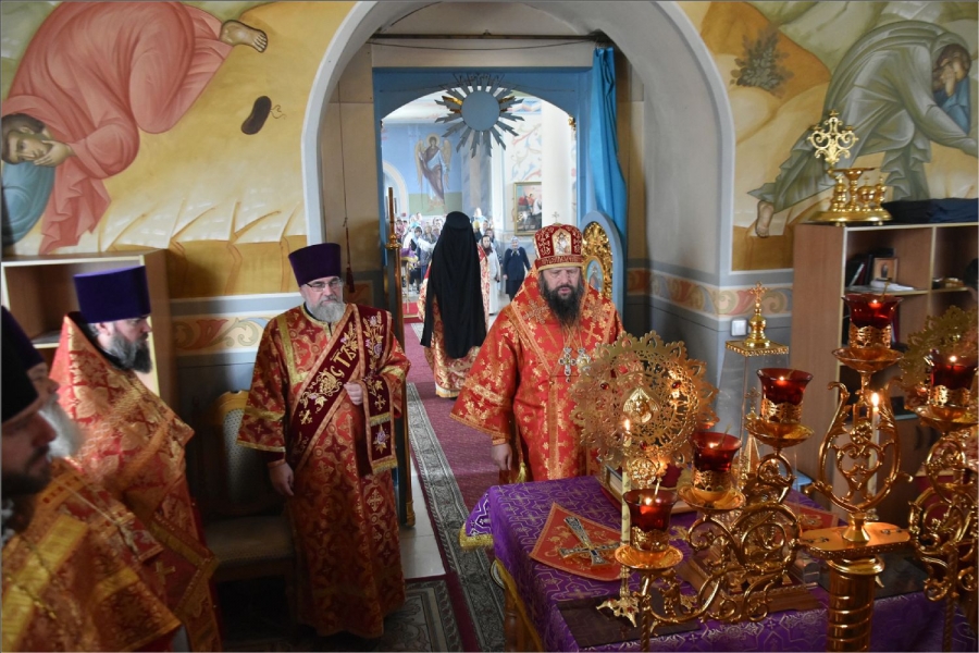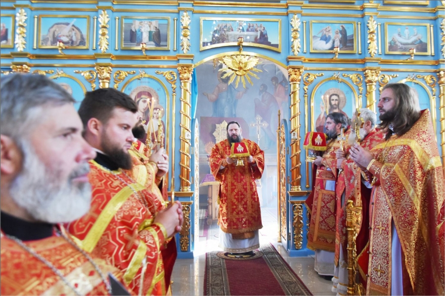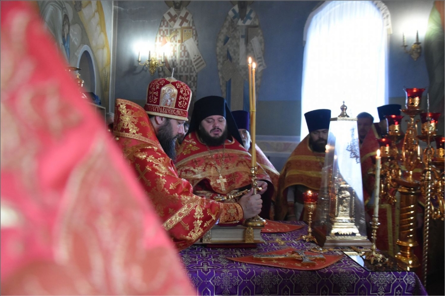 После отпуста Литургии было совершено славление Кресту Господню и святым мученицам.