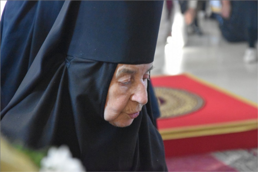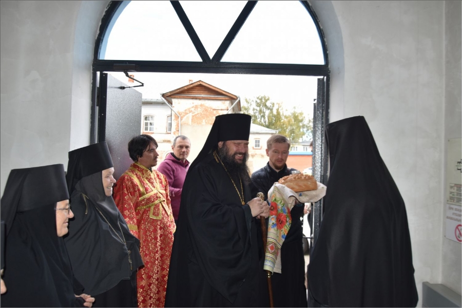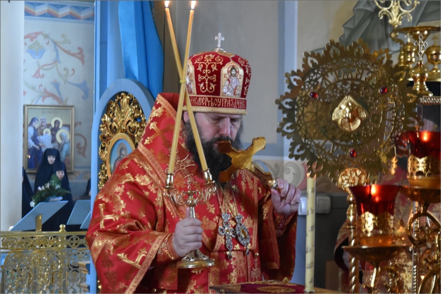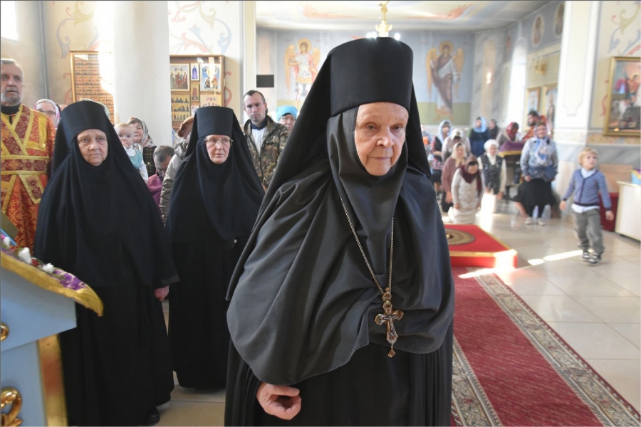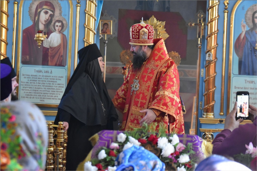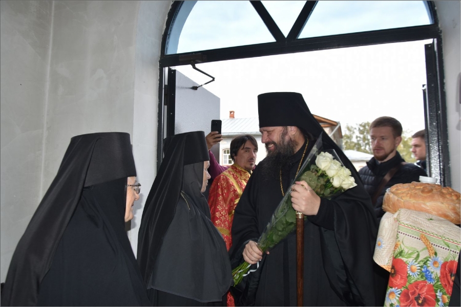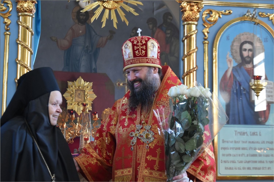 Перед входом в монастырский храм владыку встретили сестры обители во главе с игуменией Верой (Шевченко).
