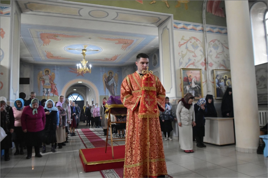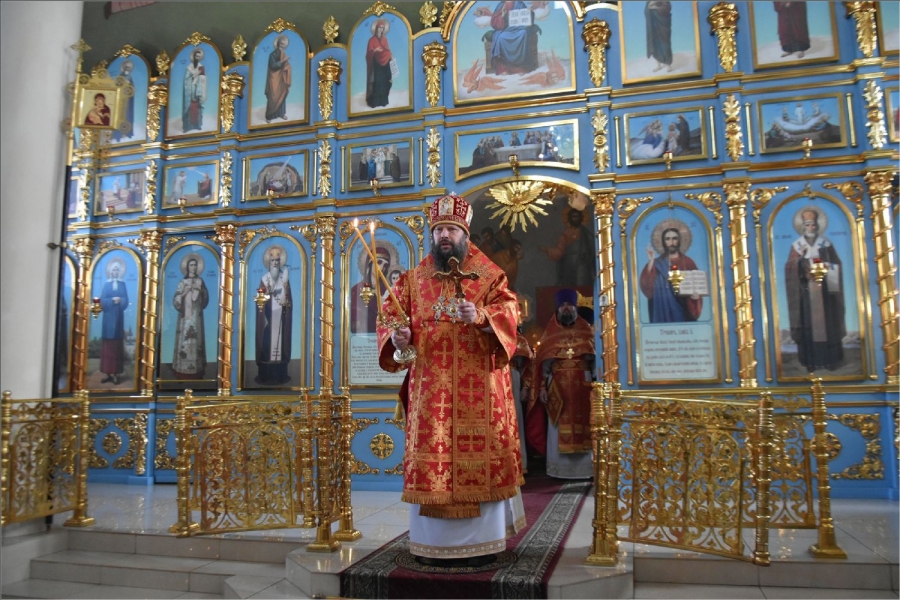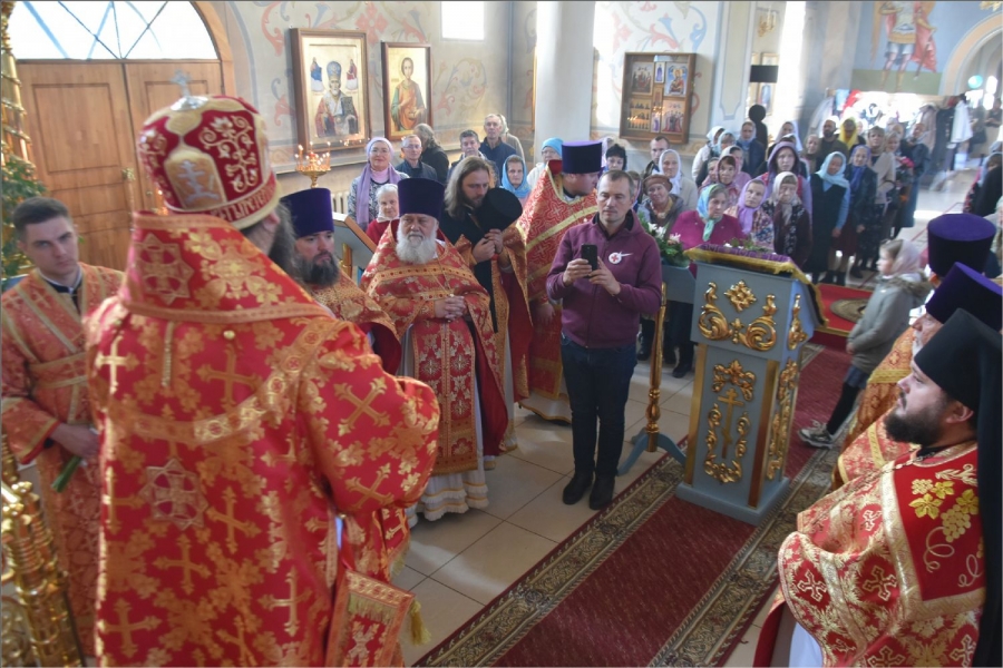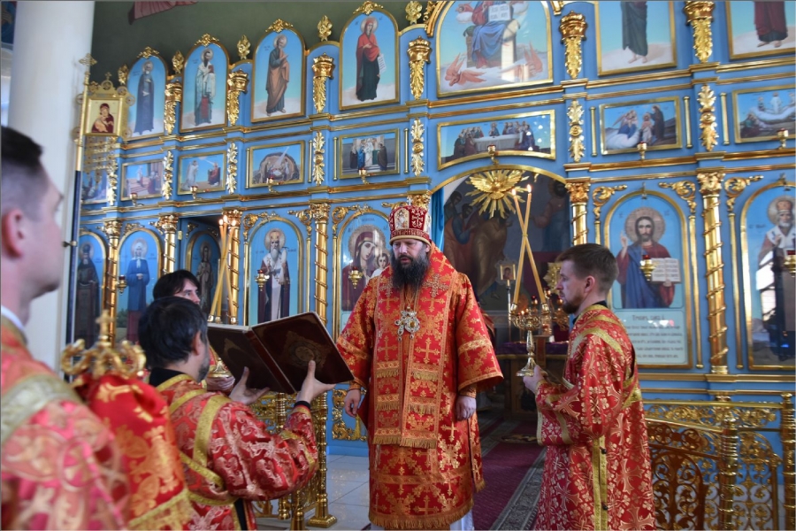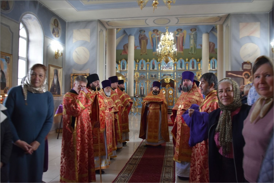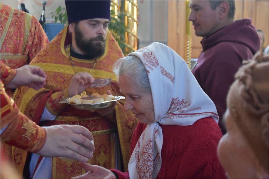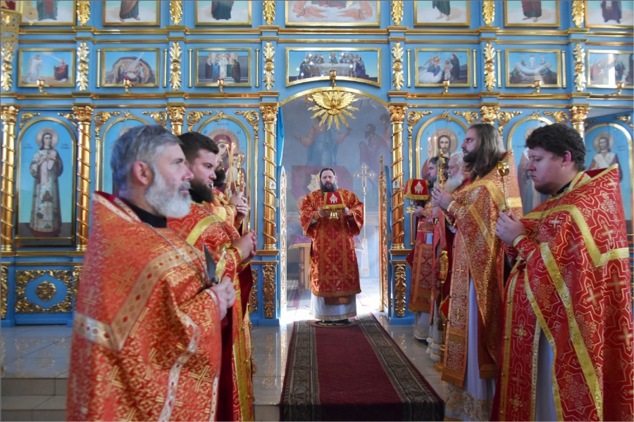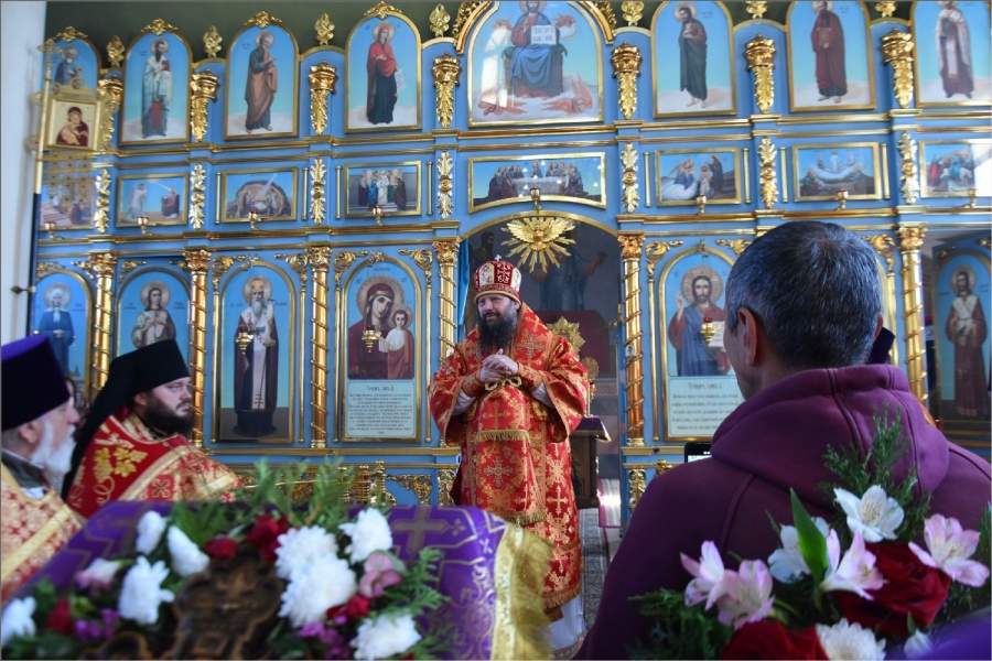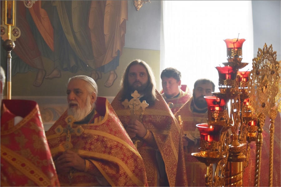 На мирной и сугубой ектениях были вознесены молитвы о Российском воинстве и о мире. Проповедь по запричастном стихе произнёс иерей Илья Павлов.