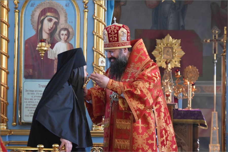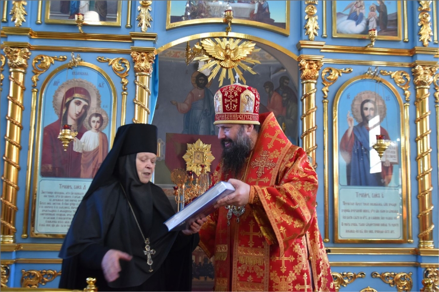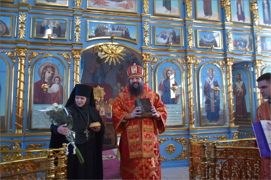Епископ Гавриил совершил литургию в Елабужском монастыре и поздравил игумению Веру с именинами