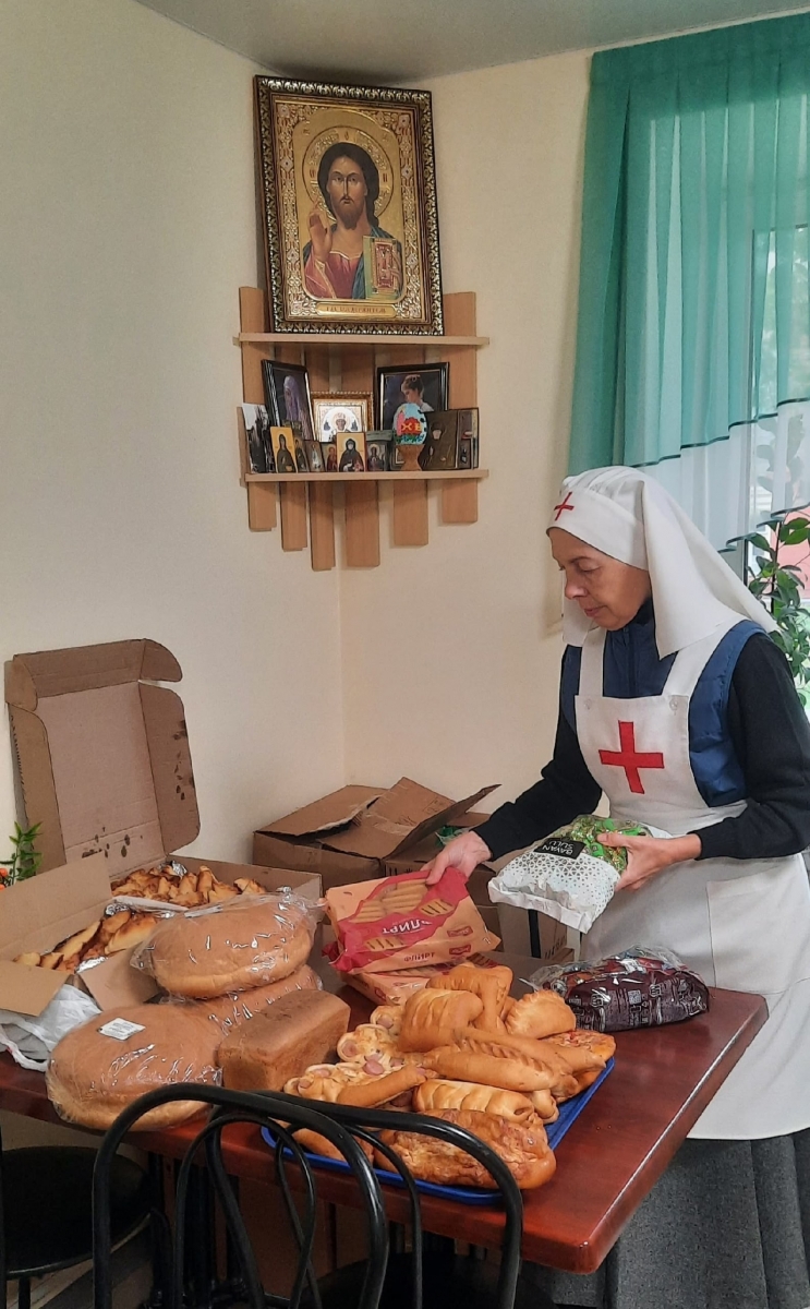 Людям, которые по состоянию здоровья не могут выйти из дома, сёстры милосердия и добровольцы общины доставили горячие обеды, продуктовые наборы и вещи первой необходимости на дом.