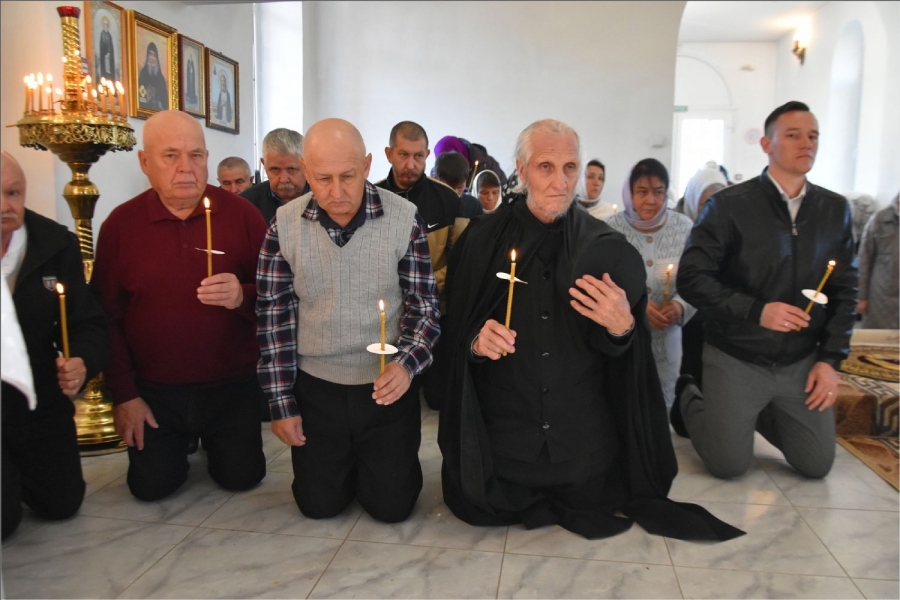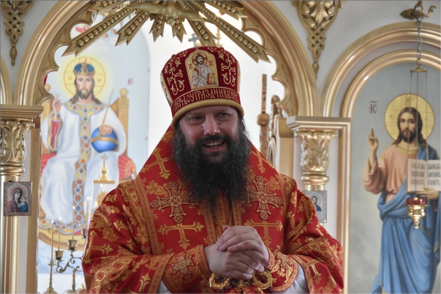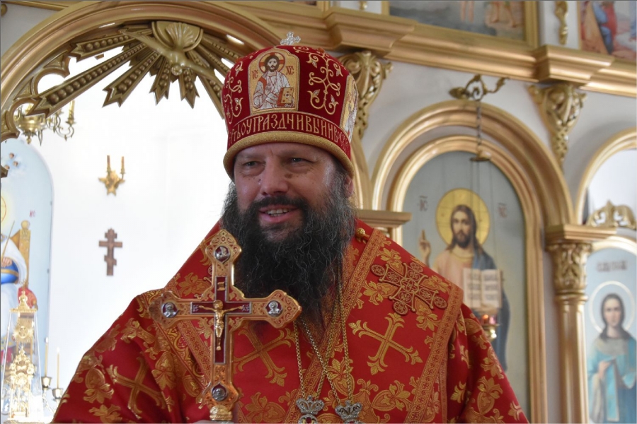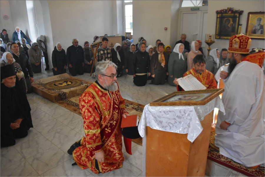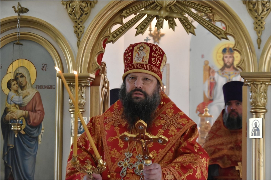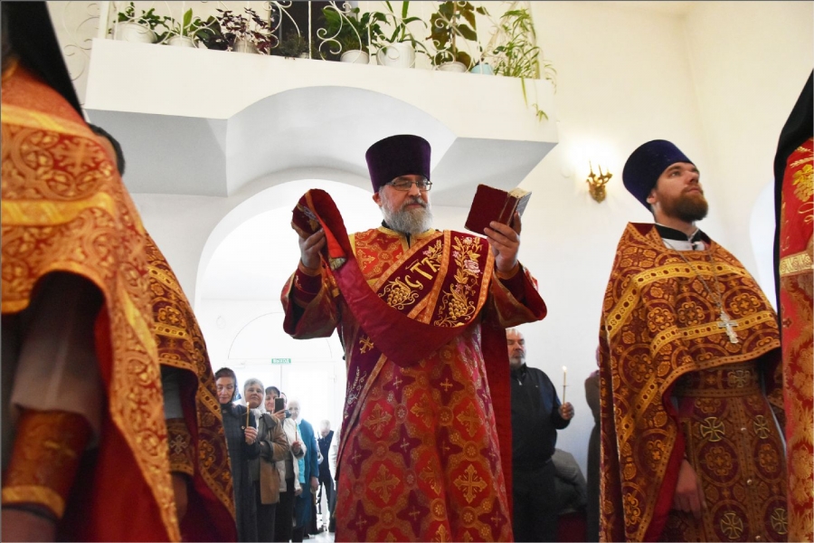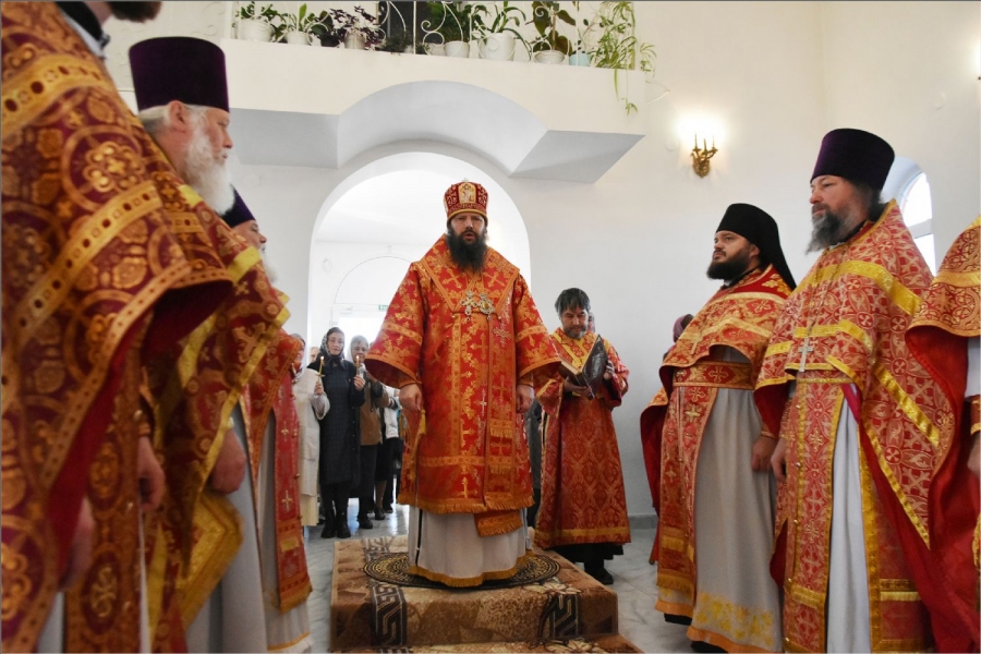 В завершение богослужения архипастырь с духовенством совершили поклонение Кресту, после чего он был занесен в алтарь. Епископ Гавриил обратился к верующим со словом: