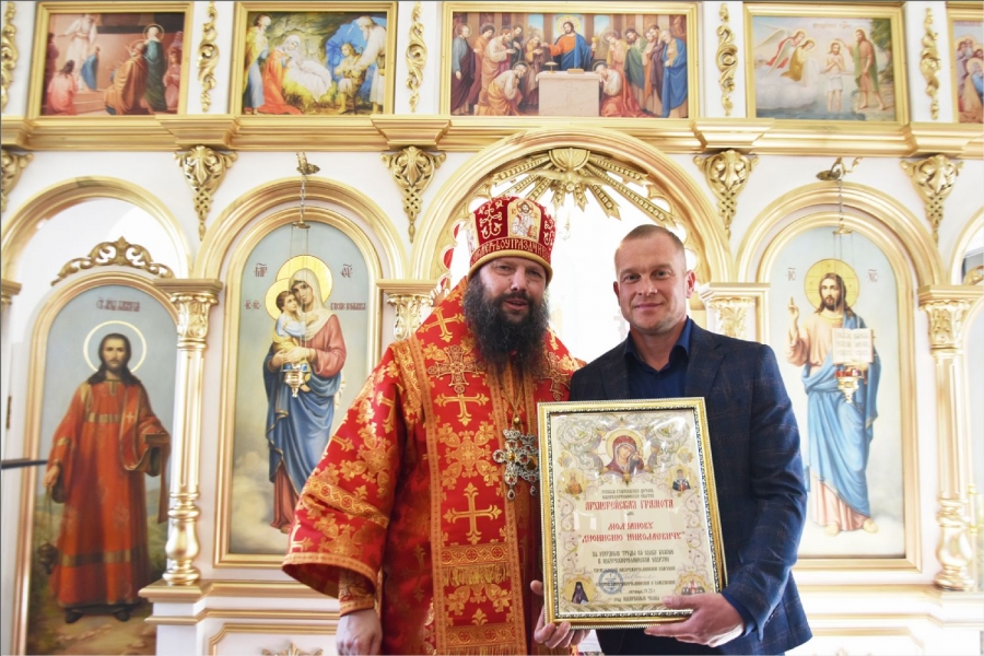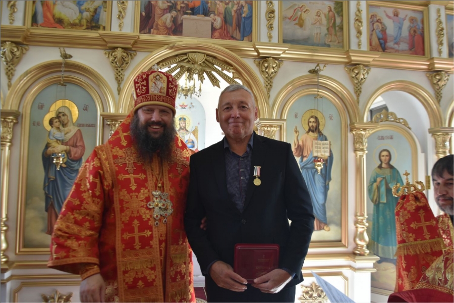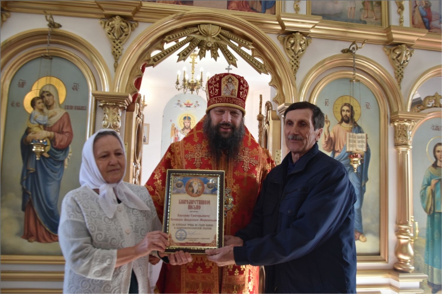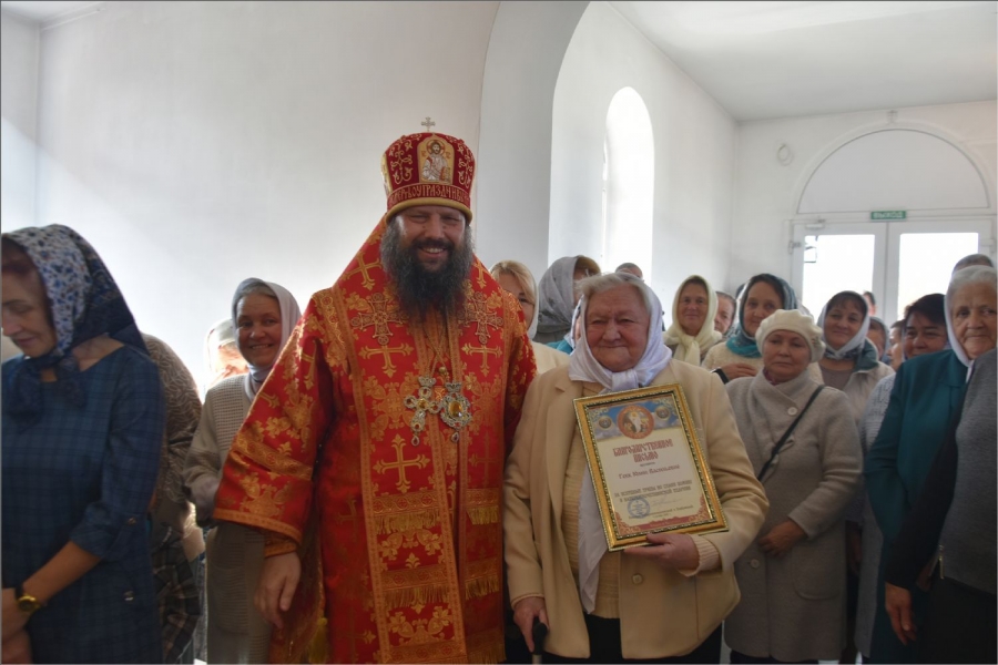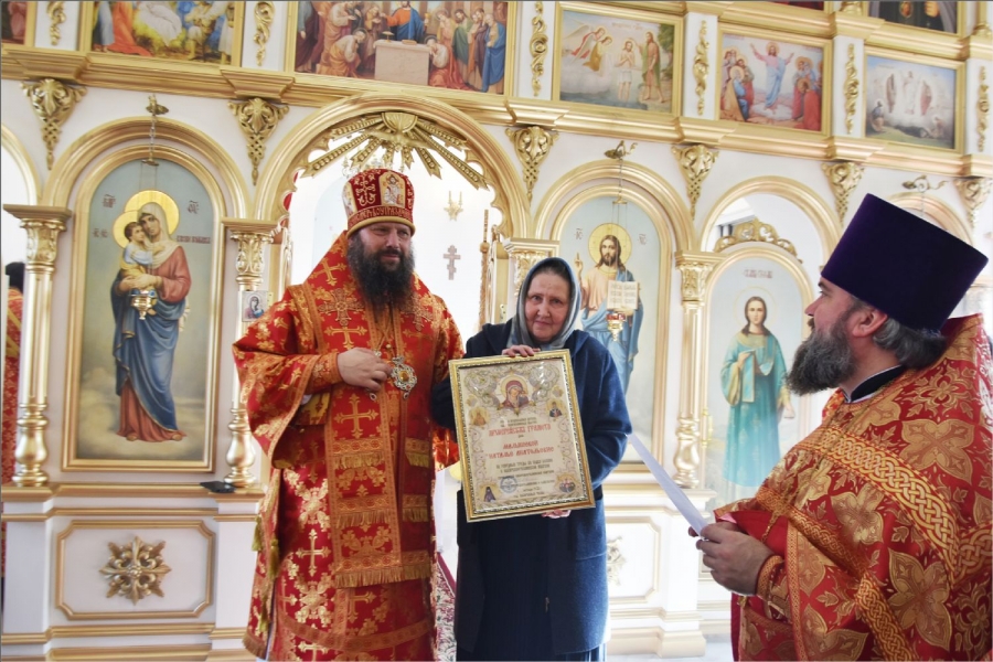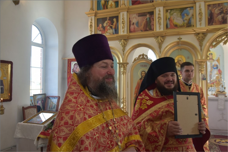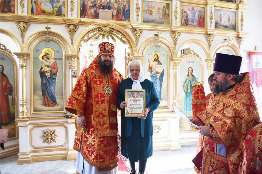 После службы Владыка поблагодарил всех, кто принимал участие в строительстве этого храма, и вручил им заслуженные епархиальные награды. Николаю Михайловичу Алексееву архипастырь вручил епархиальную награду — медаль III степени святых мучеников Павла Елабужского и чад его Бориса, Григория и Симеона. Дионисию Николаевичу Молчанову и Наталье Анатольевне Малышевой — Архиерейскую грамоту; Раисе Михайловне Немтыревой, Юлии Васильевне Гекк, Анатолию Ивановичу и Анне Григорьевне Камашевым, Валерию Григорьевичу и Неонилле Андреевне Мироновым — благодарственные письма.