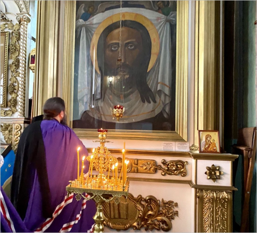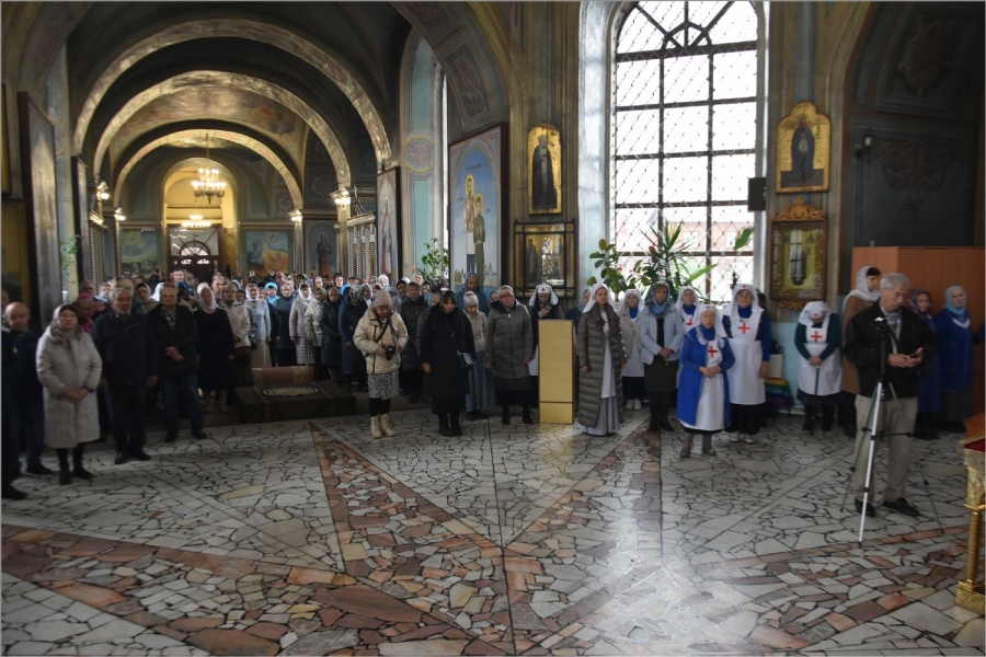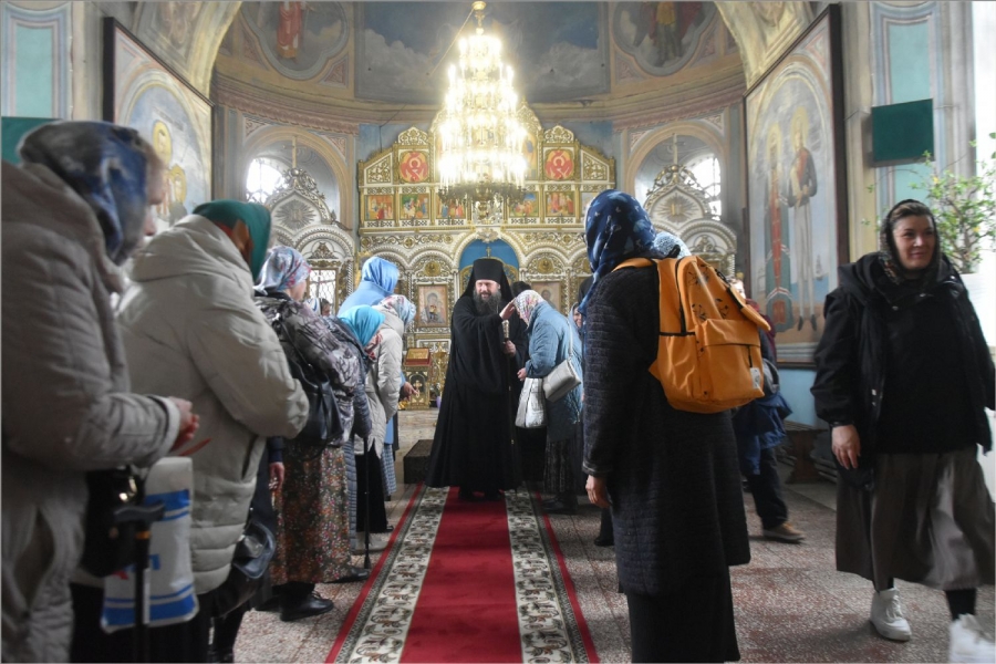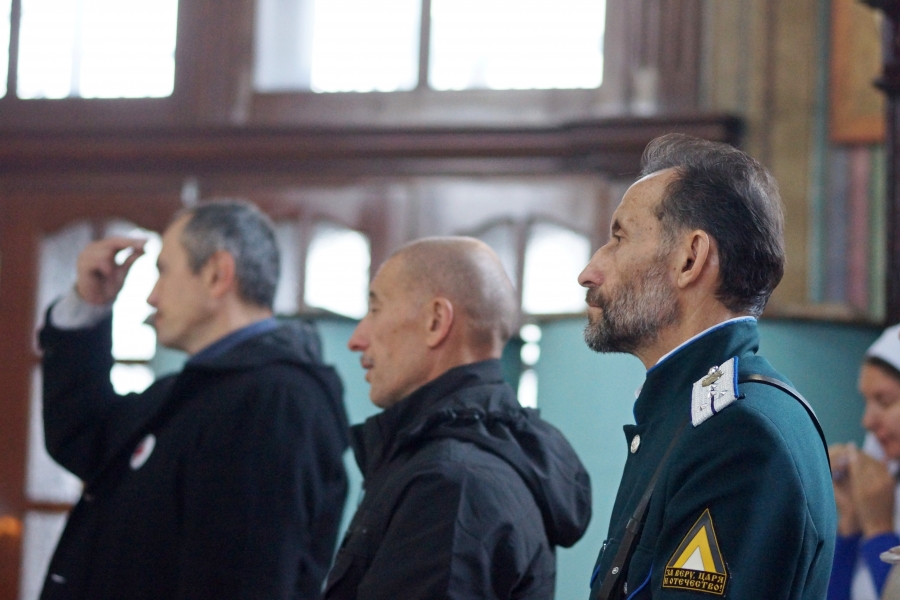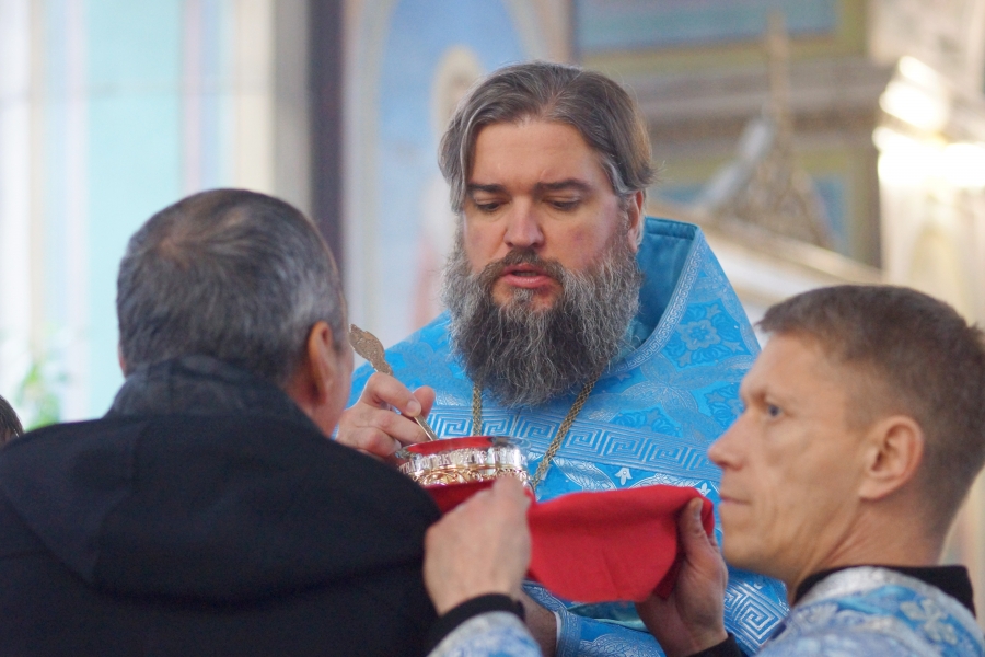 На мирной и сугубой ектениях были вознесены молитвы о Российском воинстве и о мире. По запричастном стихе проповедь произнёс иеромонах Феодор (Деревнин).