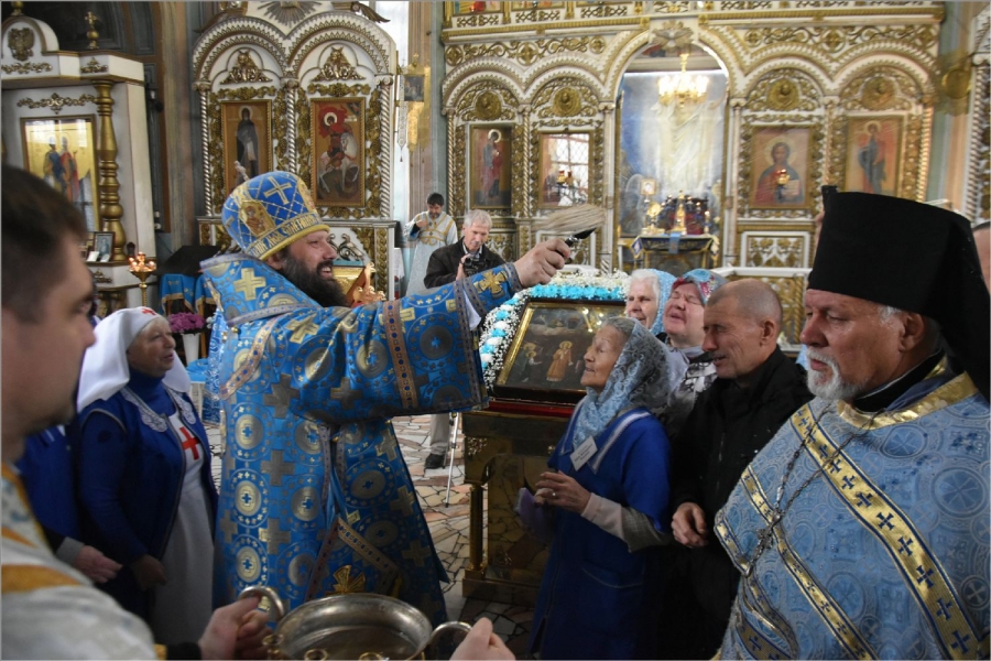 «Очень приятно, что в этом храме мы собрались на престольный праздник. А где престольный праздник, там благодать сугубая, усиленная многократно. Будем сегодня просить Матерь Божию, чтобы Она услышала нас, вспомнила какие-то наши заветные просьбы. Конечно, Она всегда нас слышит. Но бывает, что не все сразу исполняет Господь. Это значит, что надо помолиться горячее, ведь очень важно наше содействие Спасителю.
