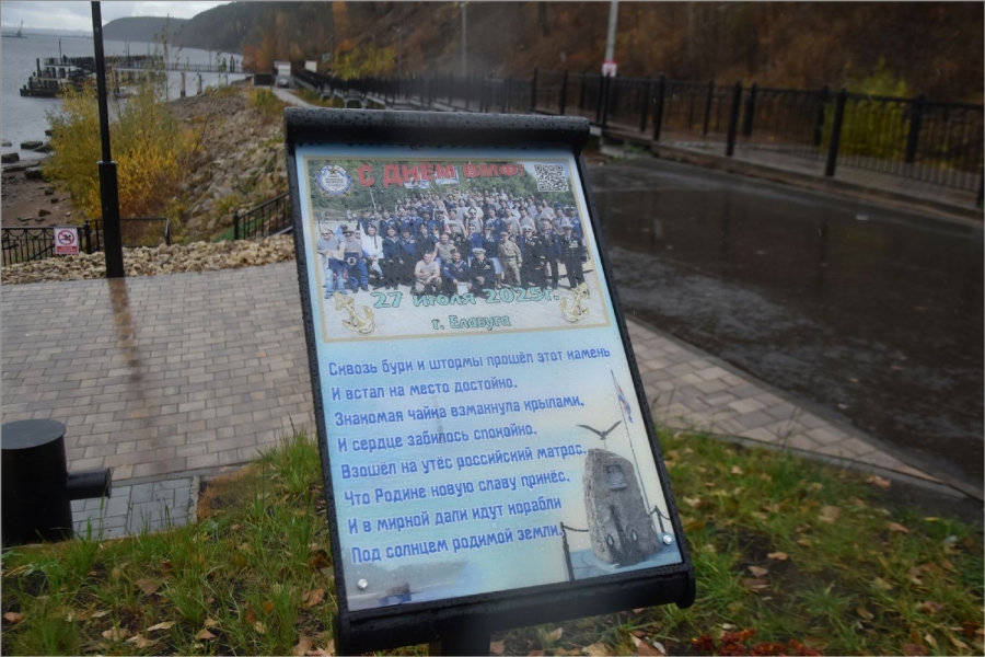 В июле 2025 года в День Военно-Морского Флота России торжественно открыли памятный знак военным морякам на новой набережной города Елабуги недалеко от причала.