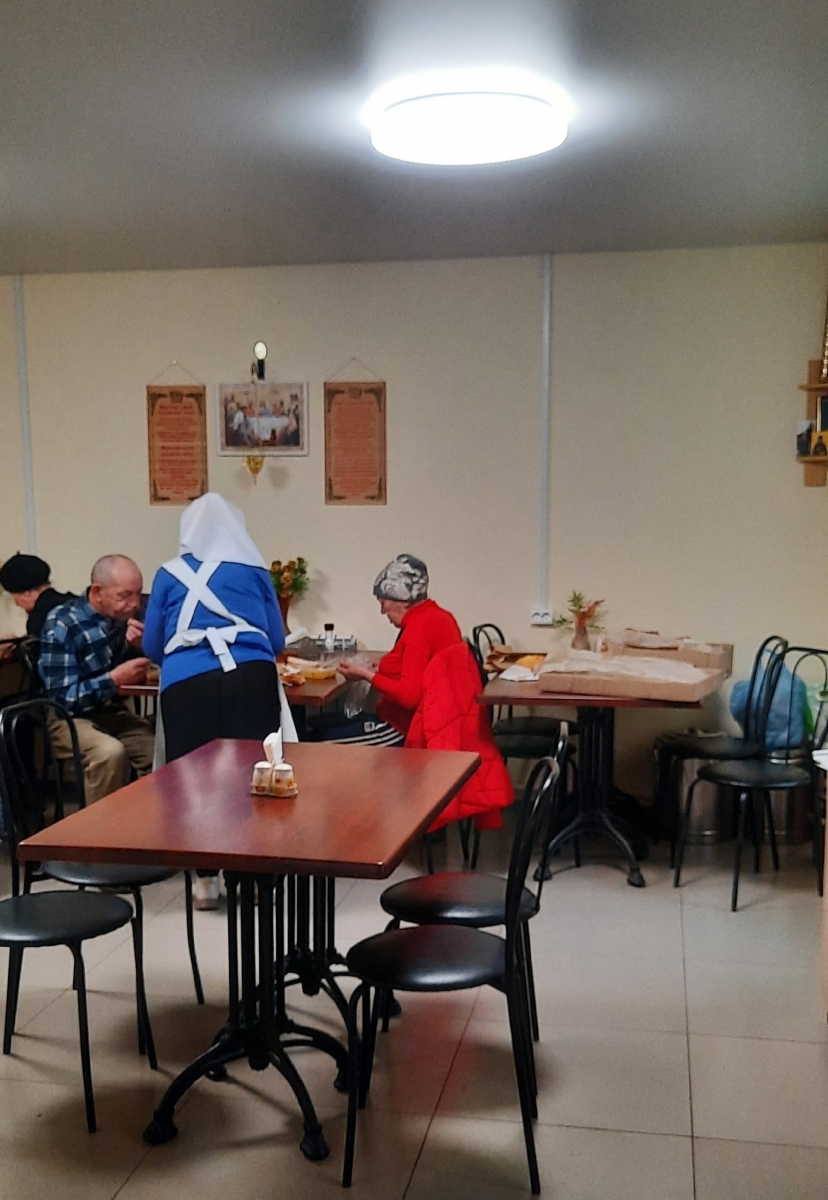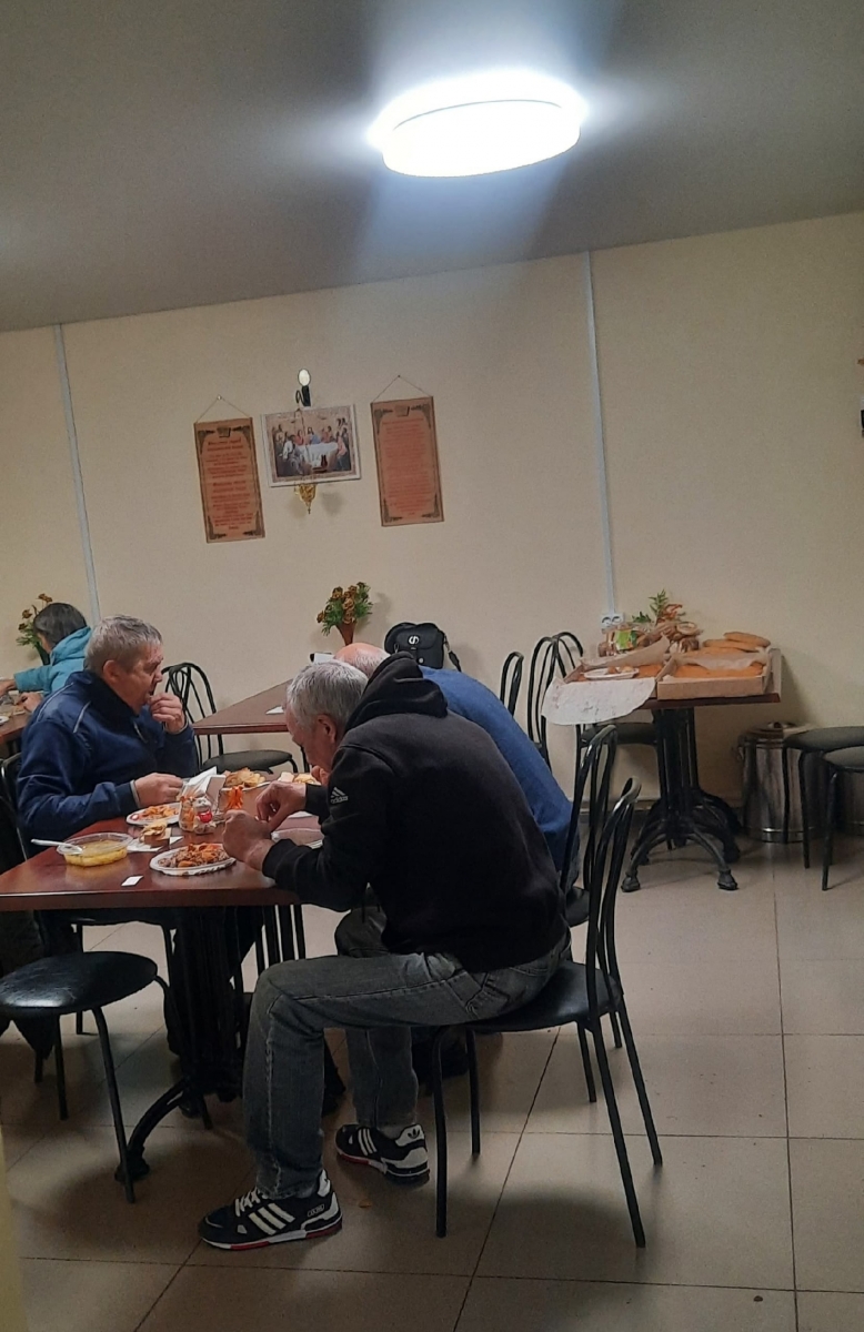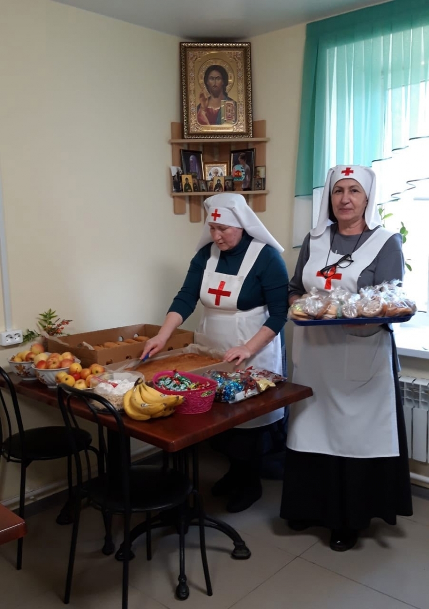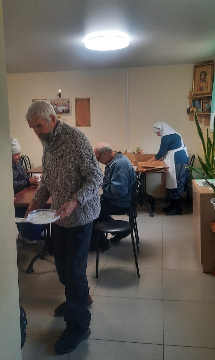 Так, и в воскресенье 26 октября в «Доме милосердия» состоялся благотворительный обед для лиц, нуждающихся в социальной поддержке. Всегда стараясь сделать меню полноценным и вкусным, благодетели сестричества приготовили для пятидесяти четырех человек мясной суп-лапшу и гречневая каша с мясом. К чаю были поданы сладости, шаньги и пироги, принесенные прихожанами на помин души сродников.