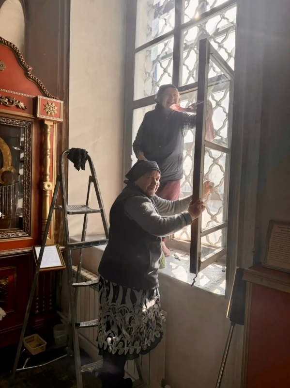 Усилиями и стараниями священнослужителей, сестер и активных прихожан наводится порядок в храме и на территории монастыря.