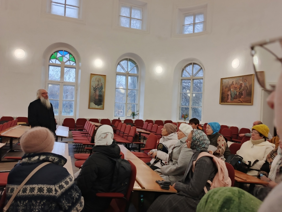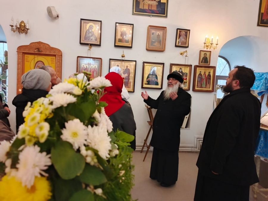 После богослужения иеромонах Кирилл (Забавнов) рассказал паломникам об истории обретения иконы.