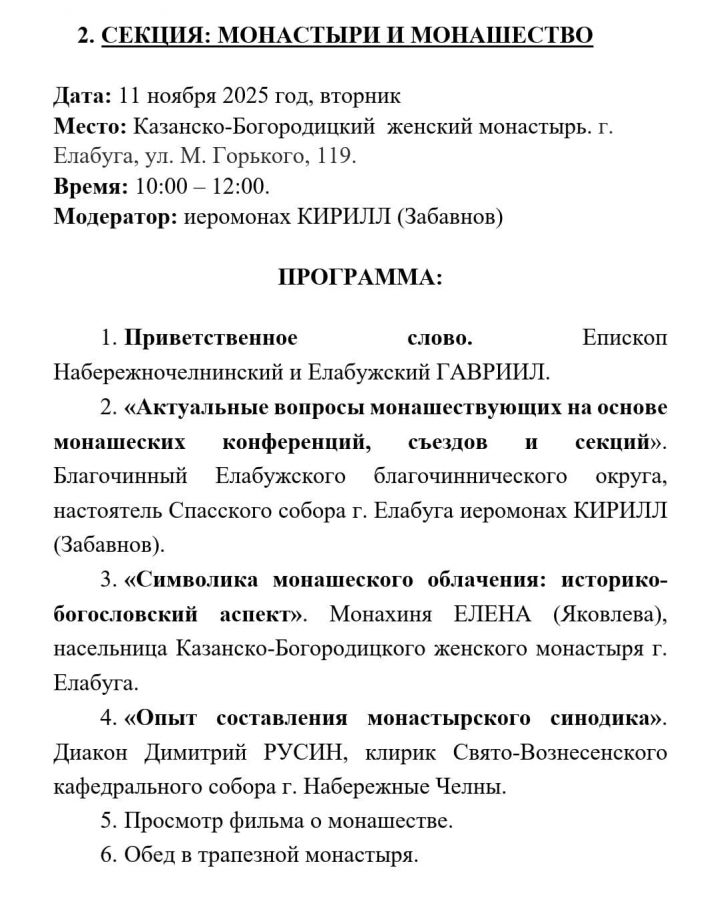 Монашеская конференция в рамках епархиальных Рождественских чтений пройдёт в Елабуге